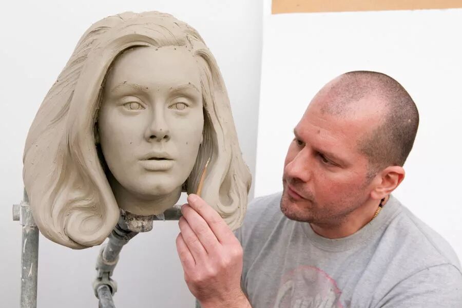 接下来,要取得名人的手模,然后开始雕刻人物的身体和头部,一般需要不同的雕刻师负责不同的部位,先支好金属支架,然后再用黏土建造轮廓,细细打磨,整个过程大概需要五周的时间。
