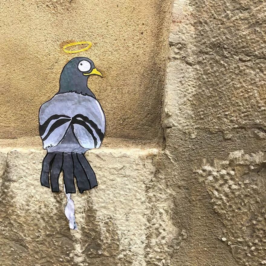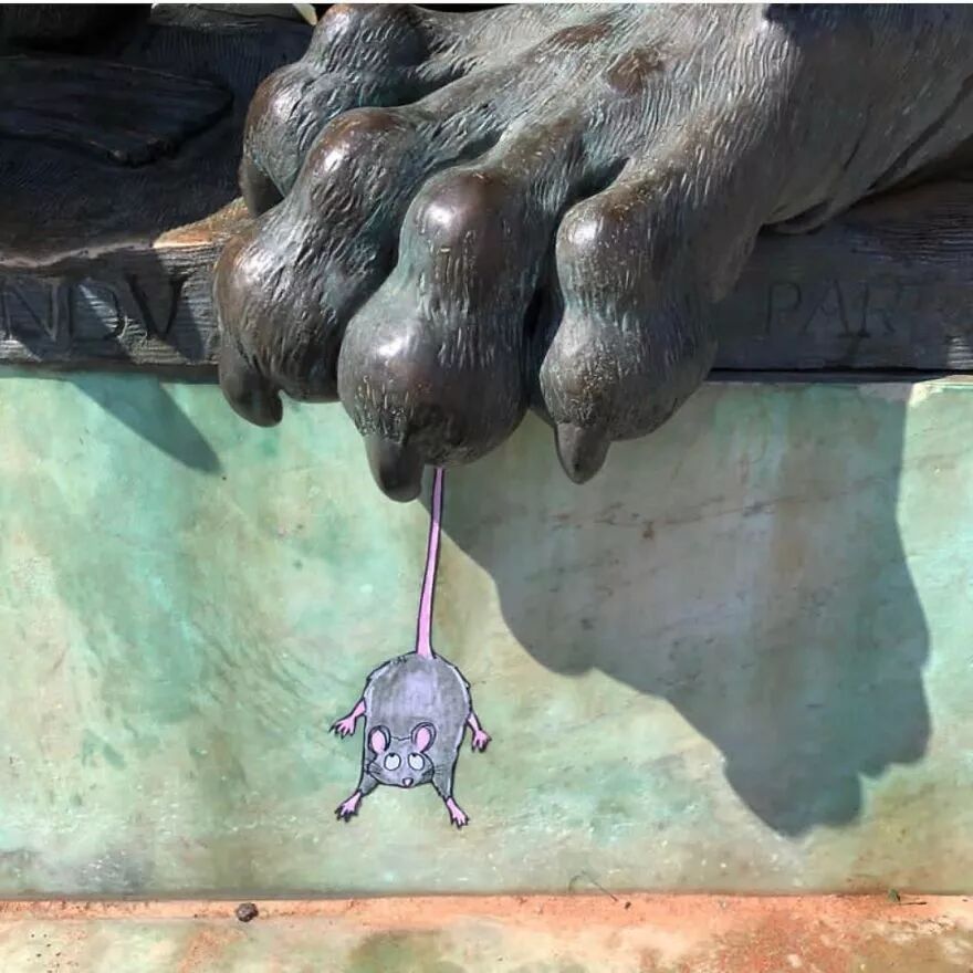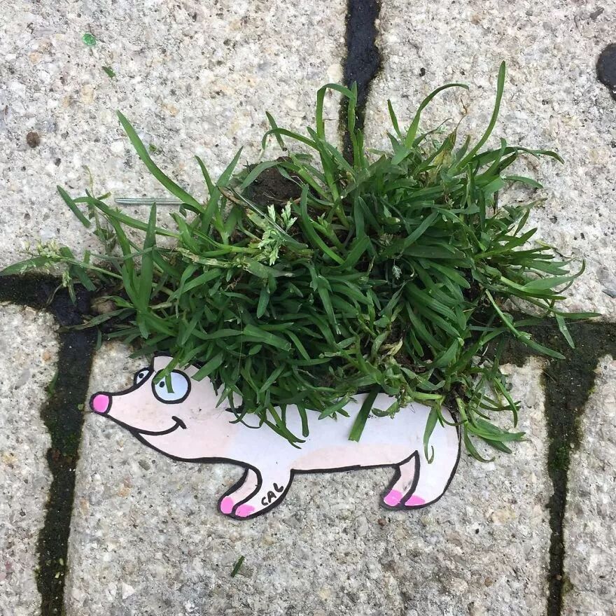 他在这座城市的街道上创作了众多充满童趣的涂鸦作品,这些可爱的涂鸦恰到好处地融合到城市的街道和景观中,充满情趣。同时,卡尔的作品经常画在一些不为人关注的地方,吸引了更多人对这些地方的关注和重视。
