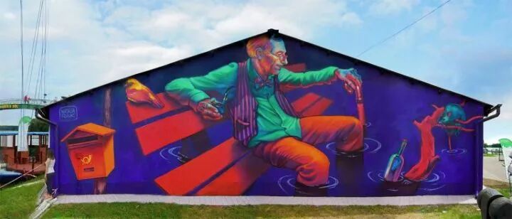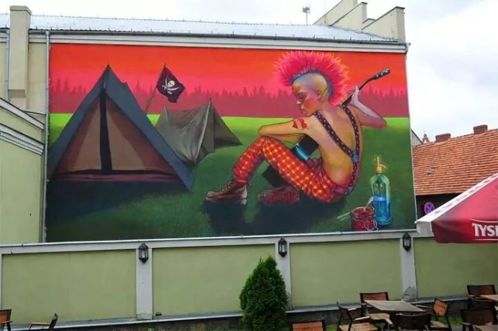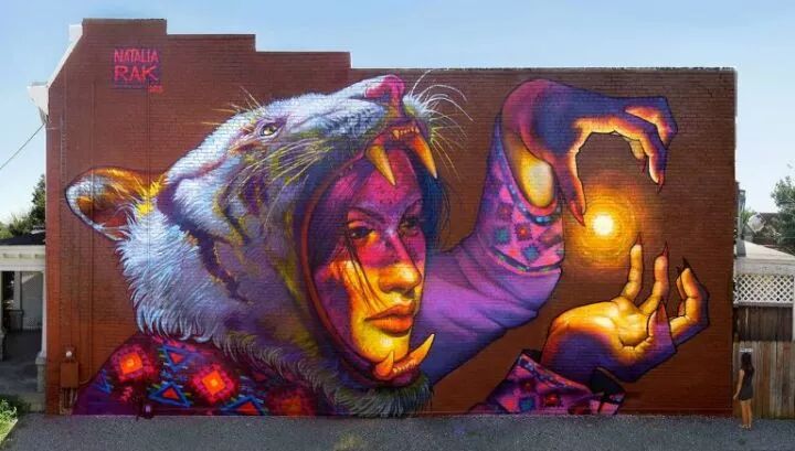 波兰艺术家和插画家纳塔利娅·拉克也是一位很有才华的墙绘大师,他对巨幅墙绘的把控十分到位,尤其是人物肖像,色彩丰富表情夸张,极具张力。他创作了众多惊人的巨型街头艺术,整面墙甚至整栋楼都是他的画布,可供他尽情发挥。
