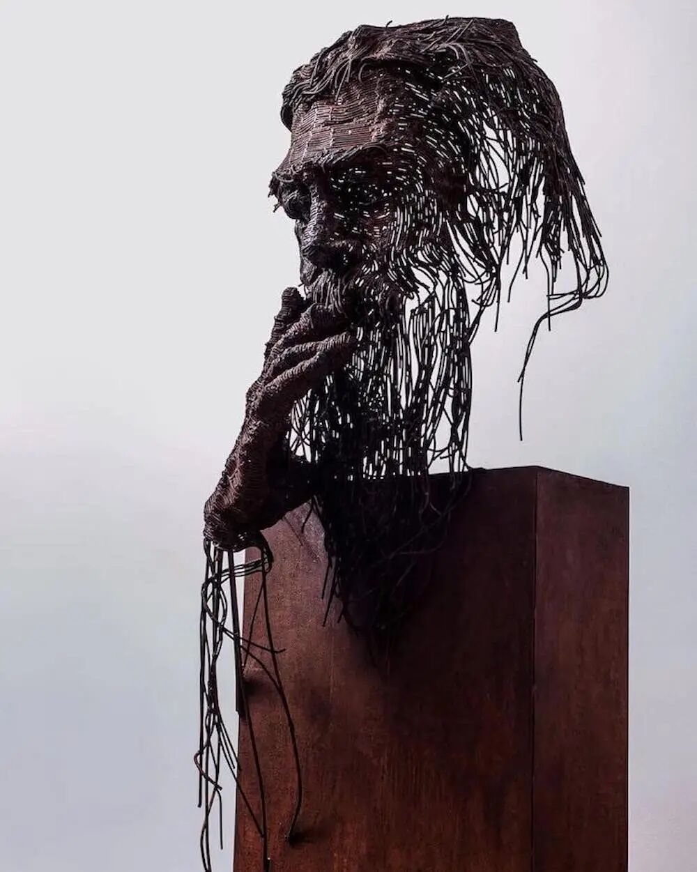 达里乌斯·休利从大学开始就利用金属线条来创作雕塑作品,现如今,他已经形成了自己的艺术风格,创作出让人惊叹不已的作品。对于达里乌斯·休利来说,金属丝就像是我们用笔画出的线条一样,我们用笔在纸上绘画,而达里乌斯·休利却用金属丝在空气中绘画。