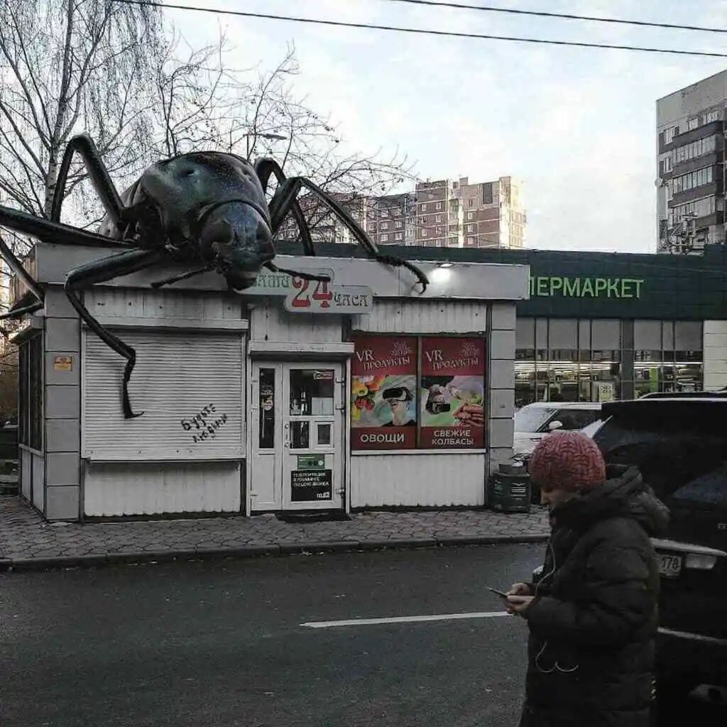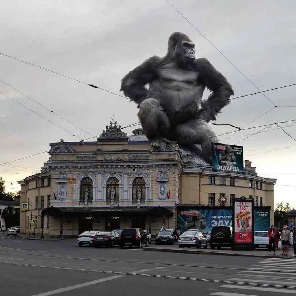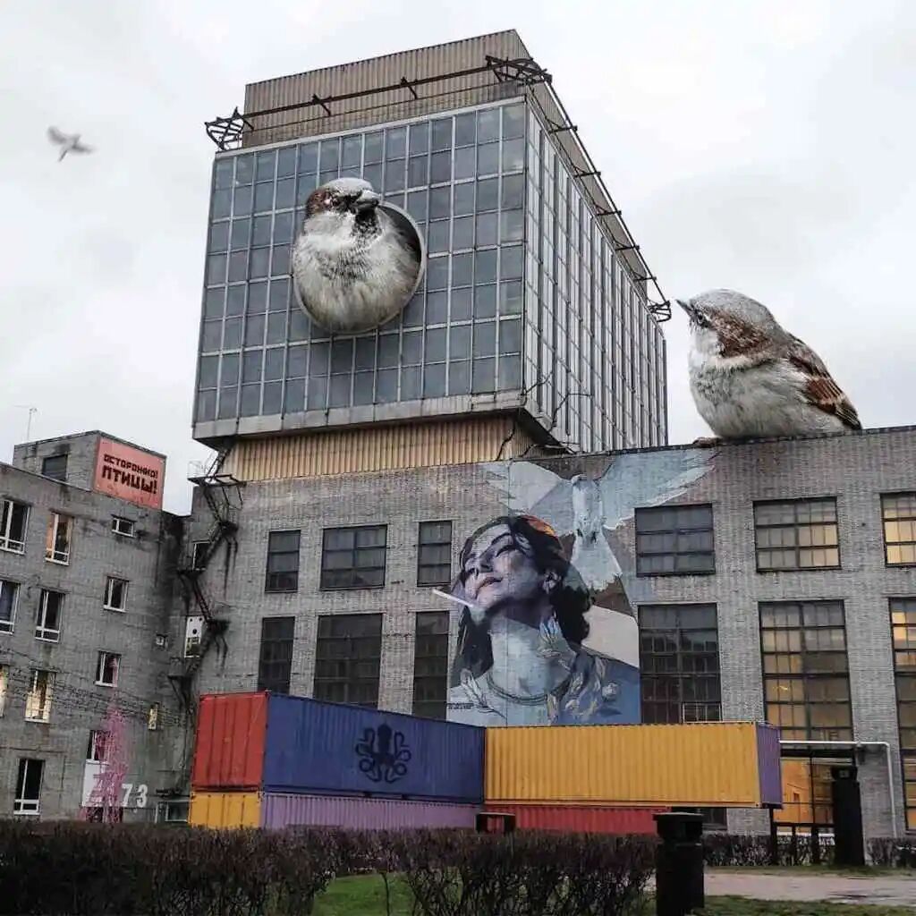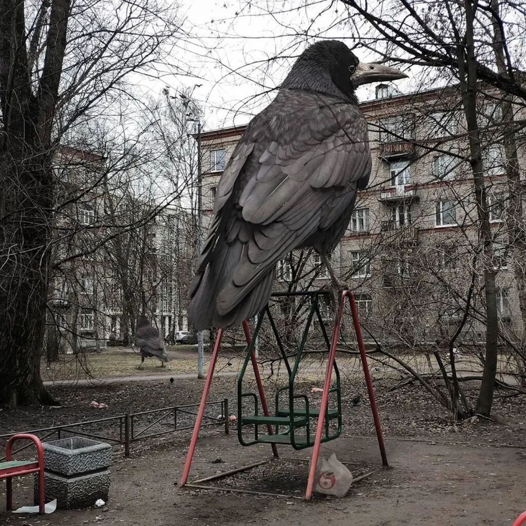 来自俄罗斯的艺术家瓦迪姆·索洛维约夫就创作了一组极具现实意义,并能让人产生反思的蒙太奇摄影作品。在他的作品中,动物的体型变得数倍于人类,但人类的场景却没有变化,一只鸽子就比一整栋楼还要高,一只章鱼可以塞满一辆巴士,一只蜗牛则可以占据整条街道......