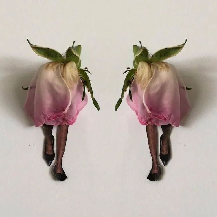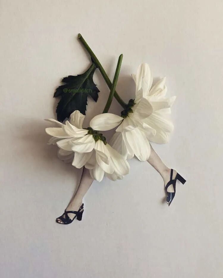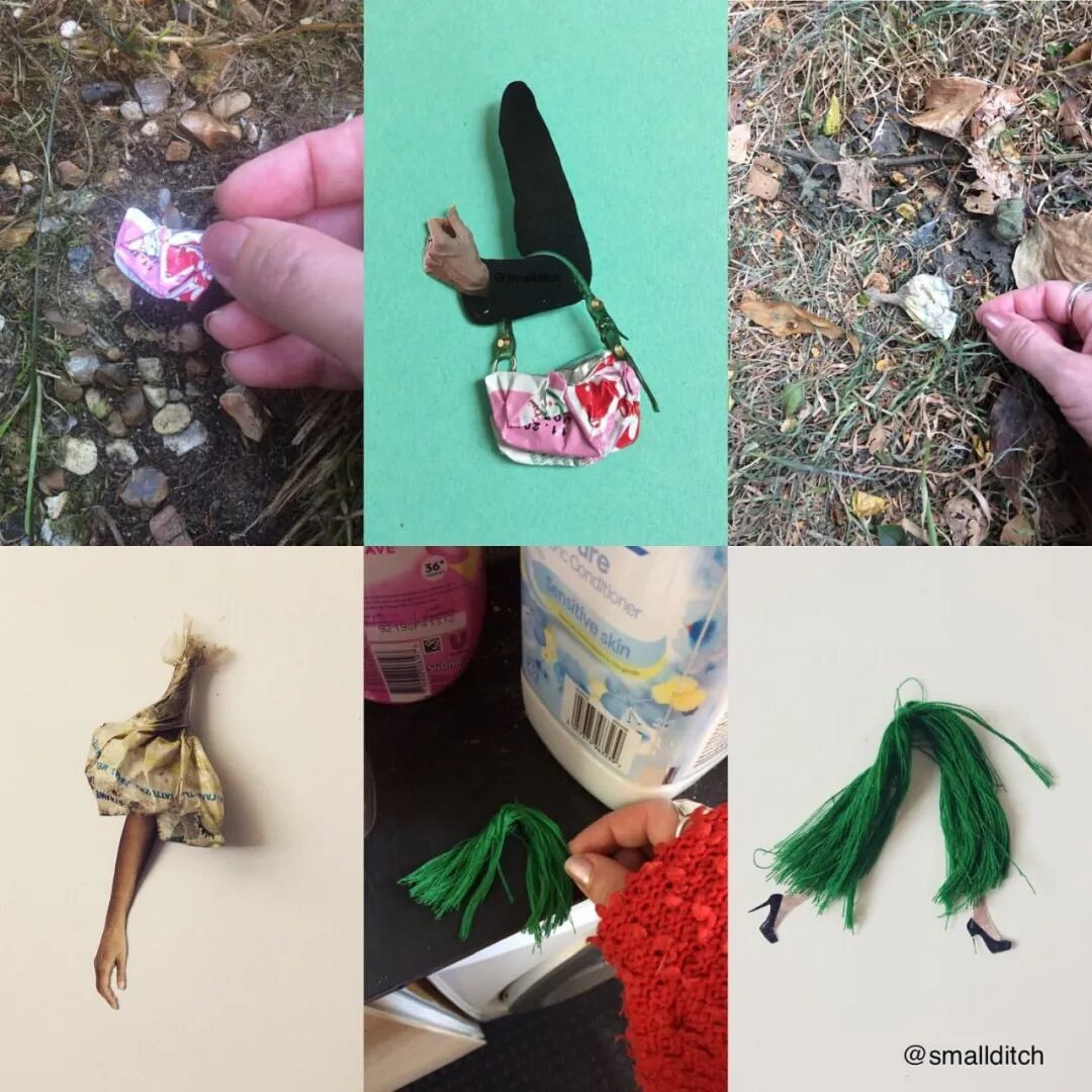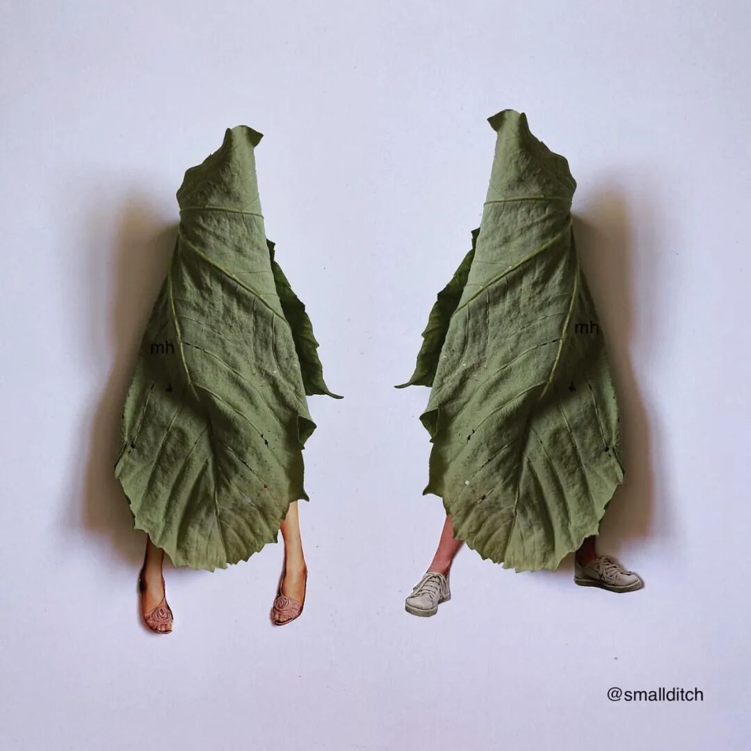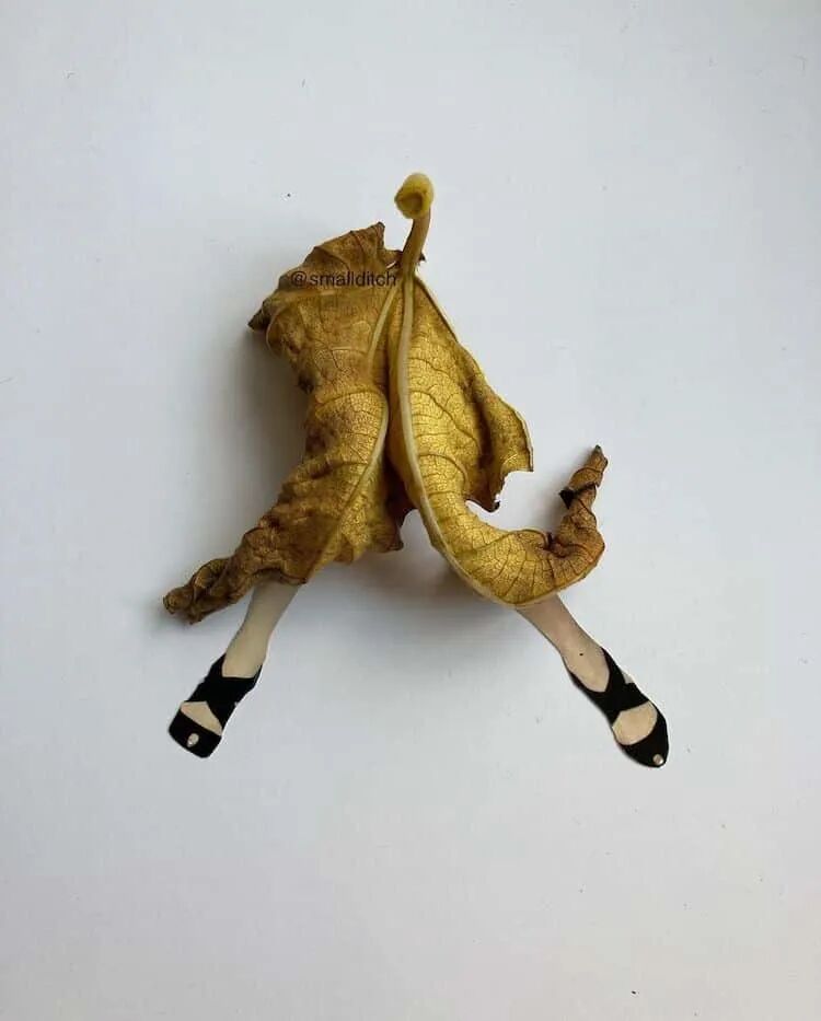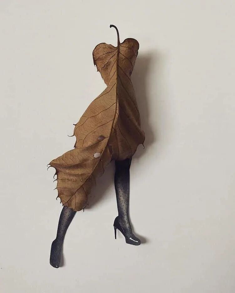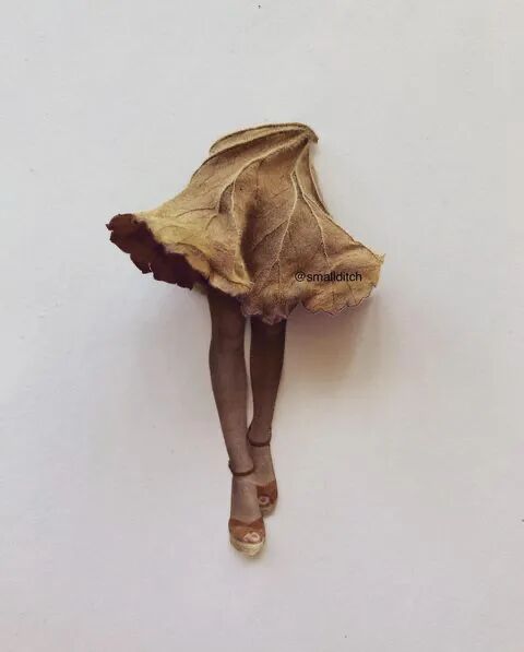 艺术家为这组作品取名为“发现时尚”,垃圾也能变时尚?相信看完玛莎·哈弗舍姆的作品,你就不会产生怀疑了。她在时装杂志上裁剪下来模特的双腿,再将其与树叶、果皮、蔬菜等结合在一起,她使用的材料,并不是刻意挑选,都是随机拾取垃圾,然后就是见证奇迹的时刻。