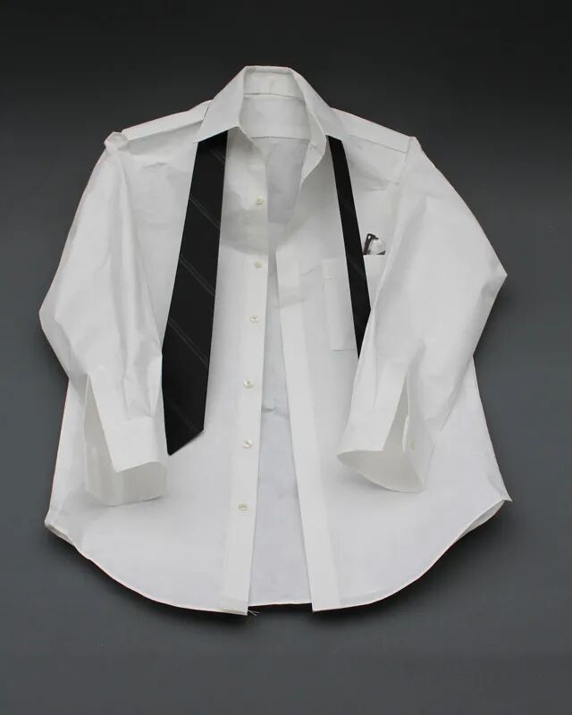 那么,这些可以出现在艺术展中的旧衣服和旧家具,究竟有什么特别的地方,能和精彩的艺术品一起展览,看完它们的标签你就懂了,这是因为,这些事物在标签上,材料那一栏中,写的只有纸,也就是说,这些旧衣服和旧家具都是由纸制作而成。