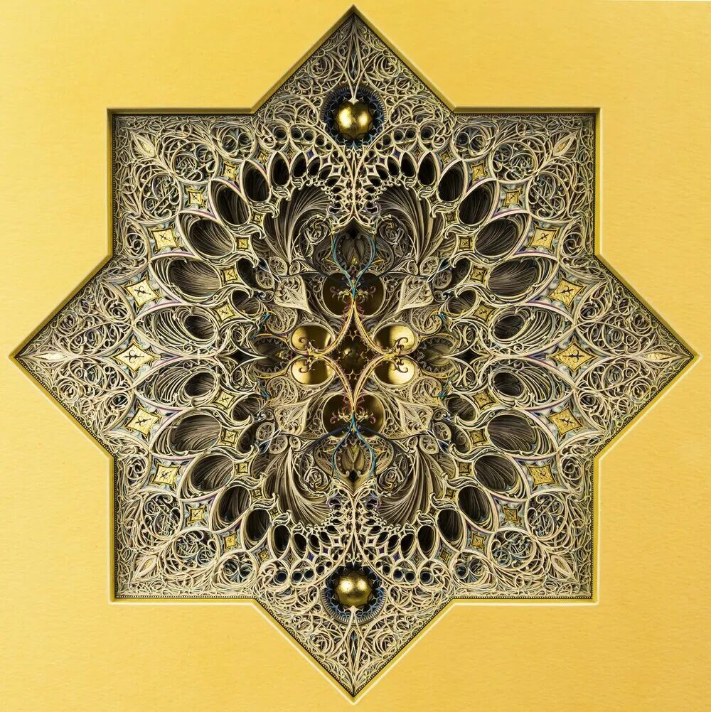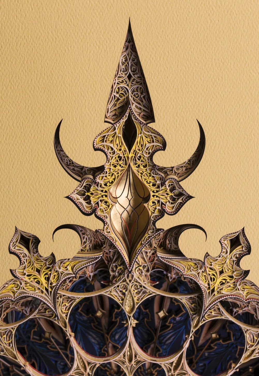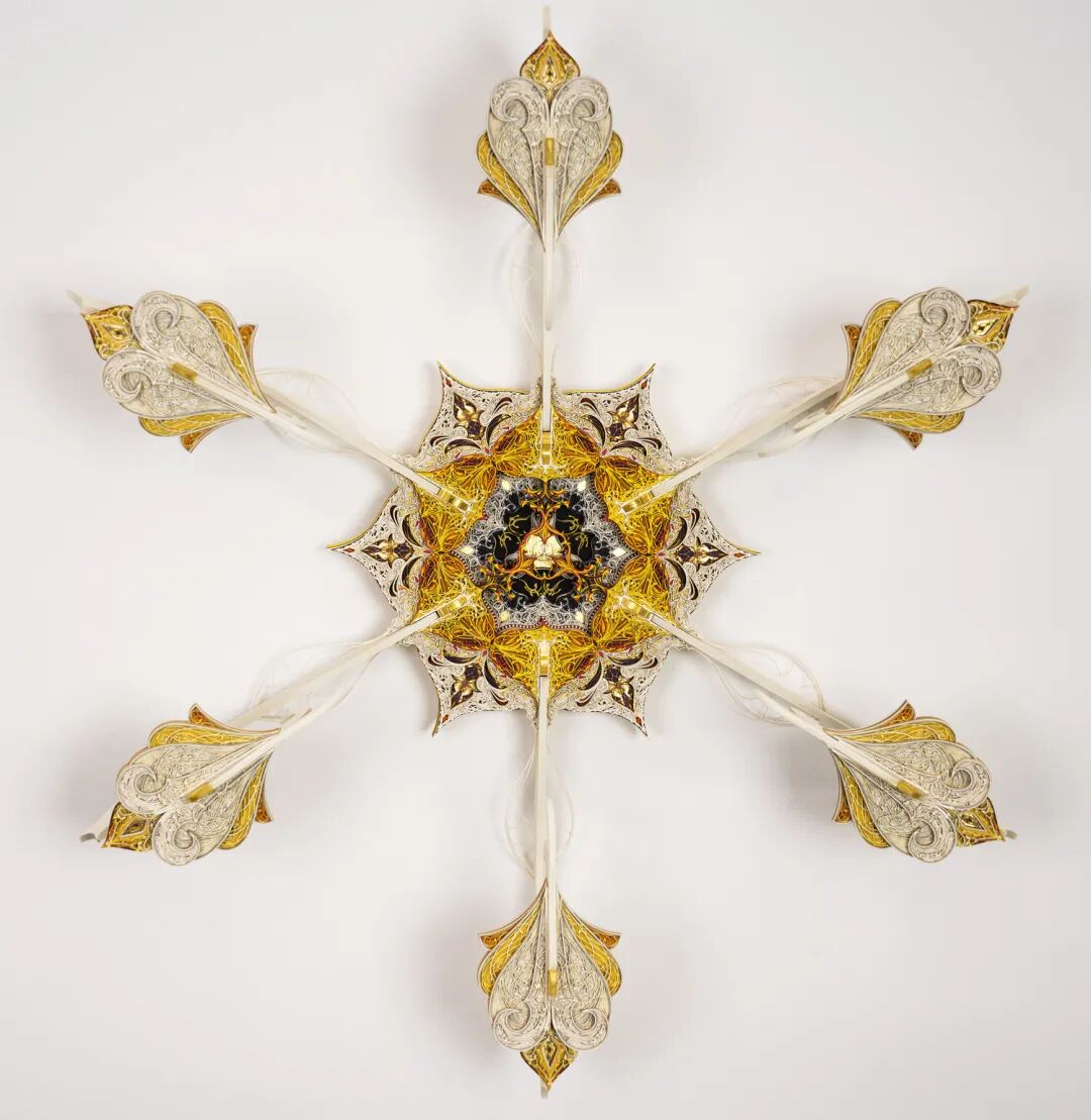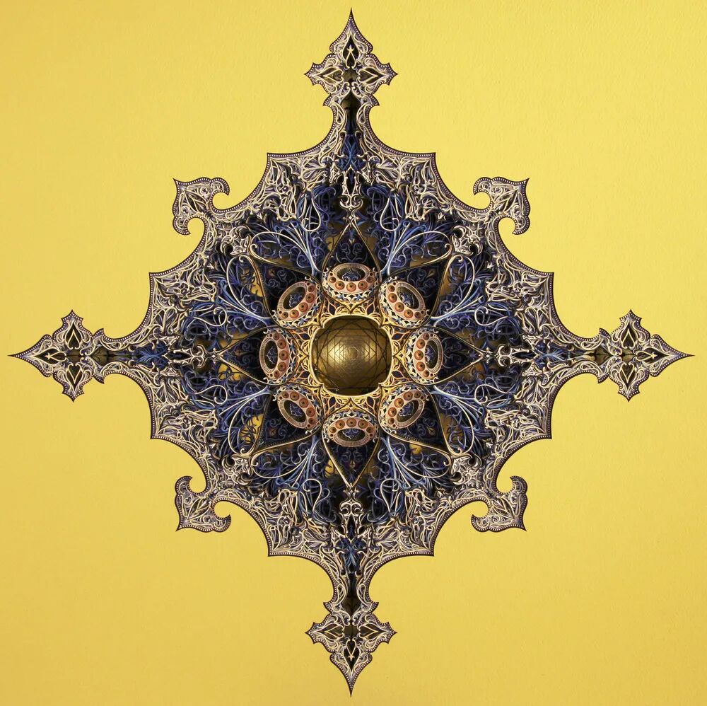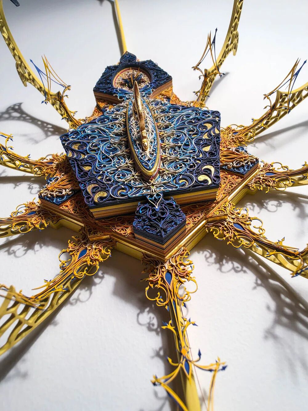 埃里克·斯坦德利纸雕作品(材料:纸、木板、水彩、金箔等)。
