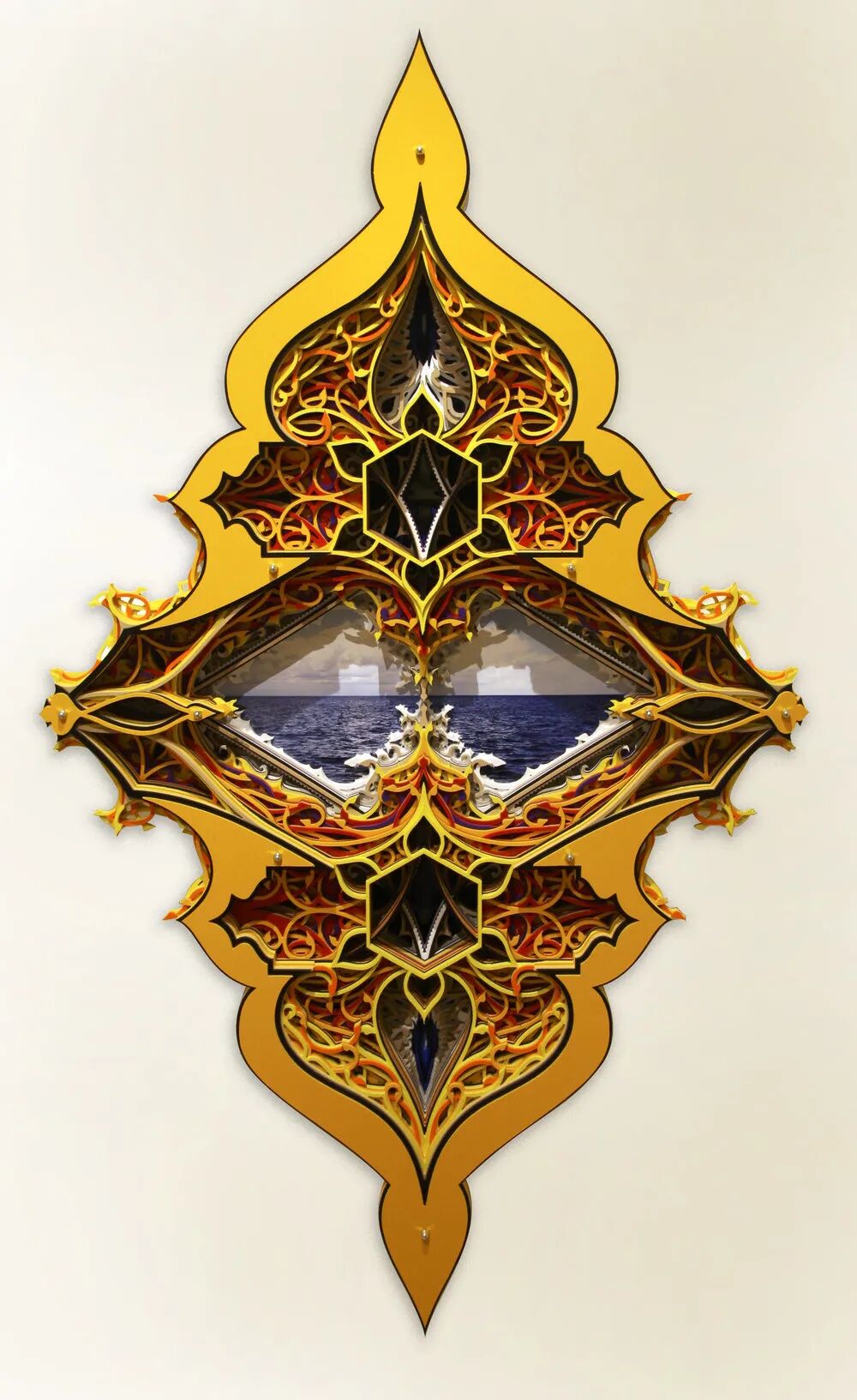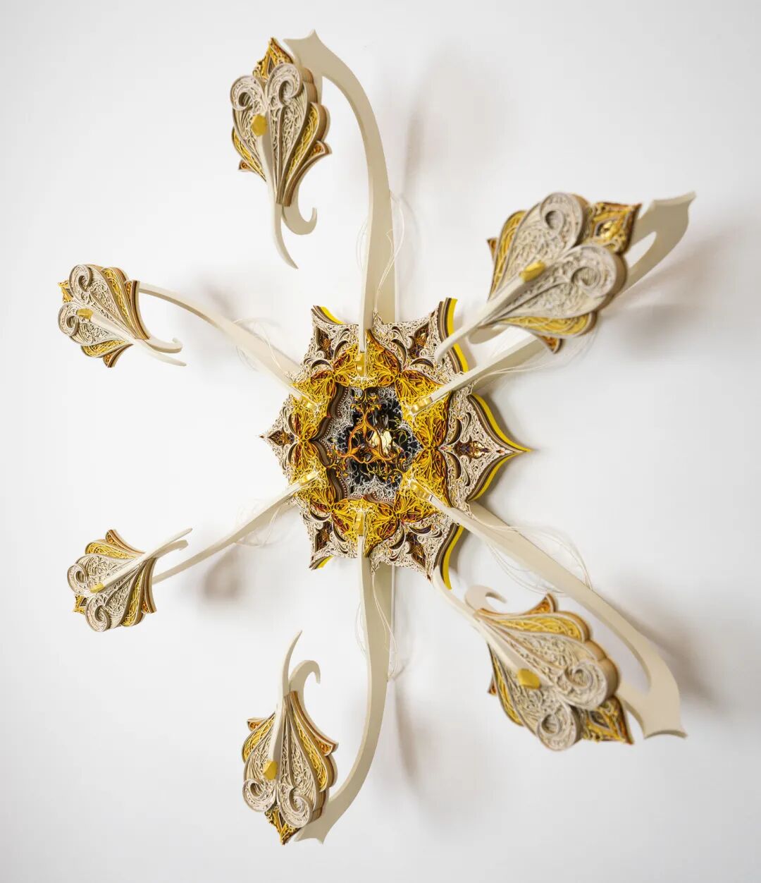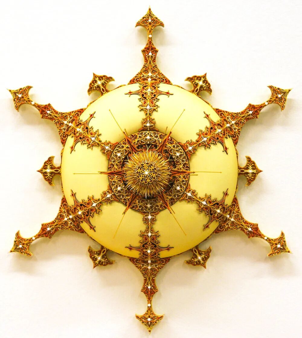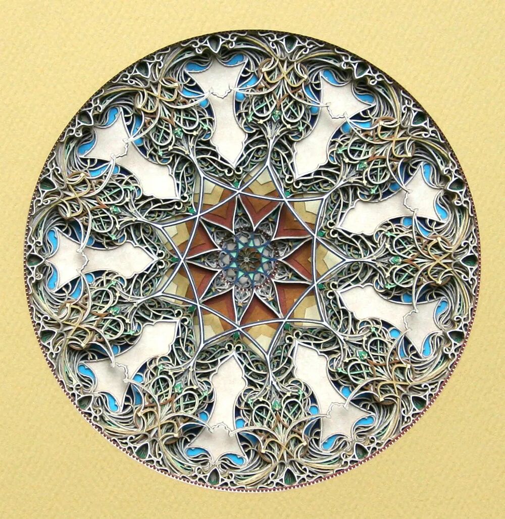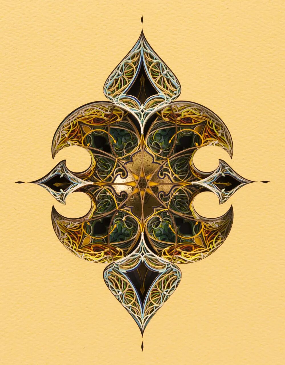 埃里克·斯坦德利纸雕作品(材料:纸、木板、水彩、金箔等)。