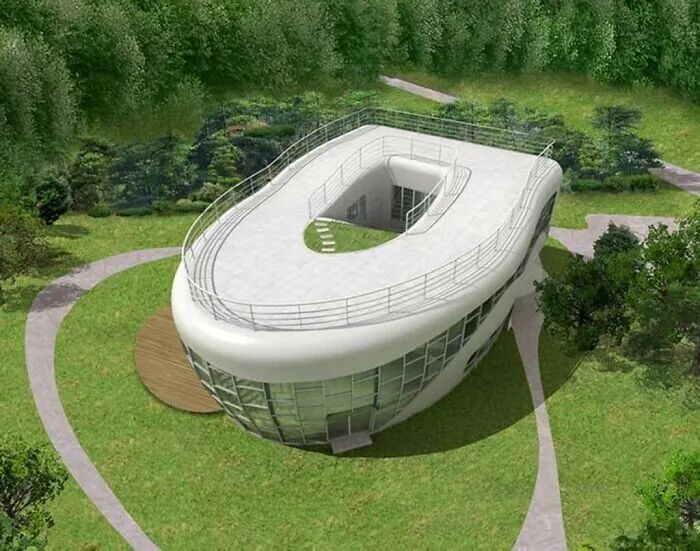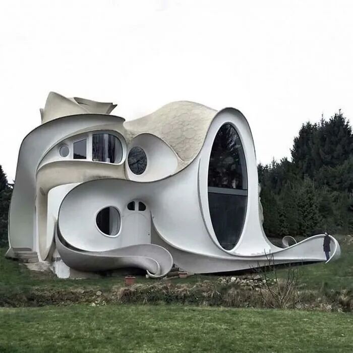 3、这个房子让人想到小朋友玩的滑梯,或者水上乐园里的一些游乐设备。