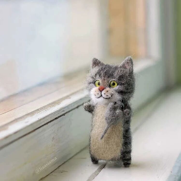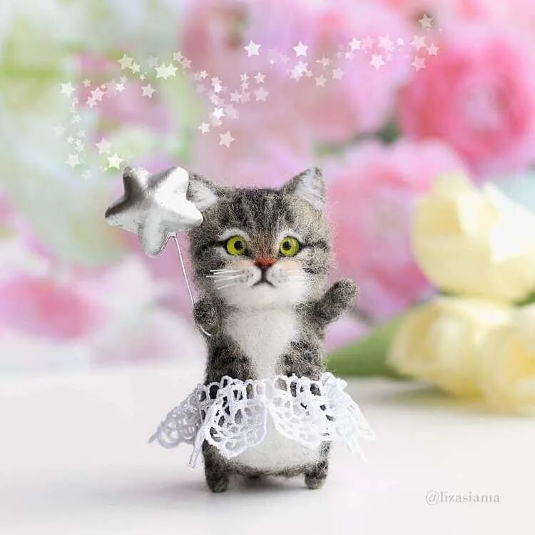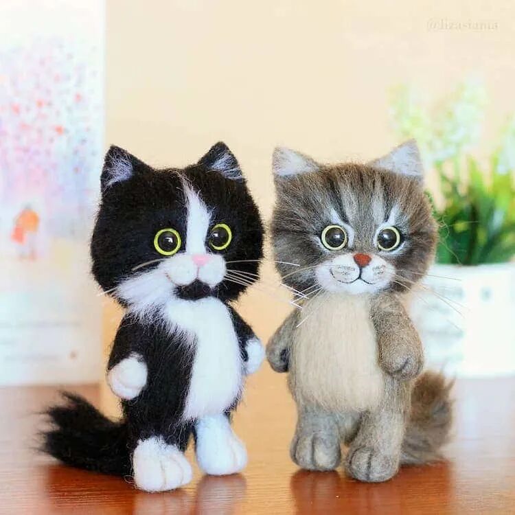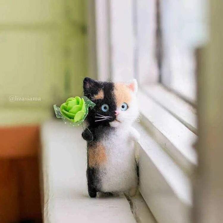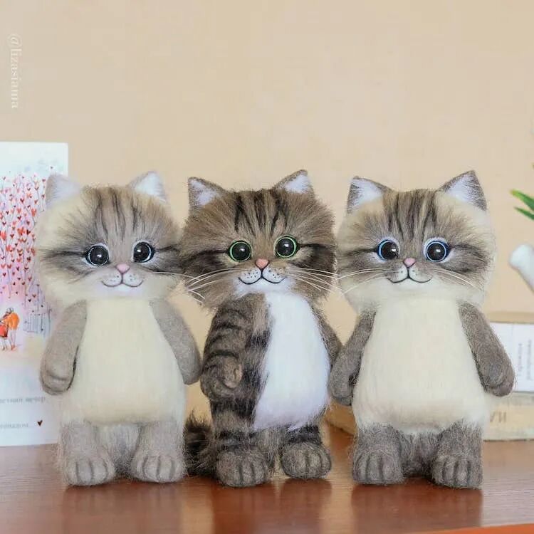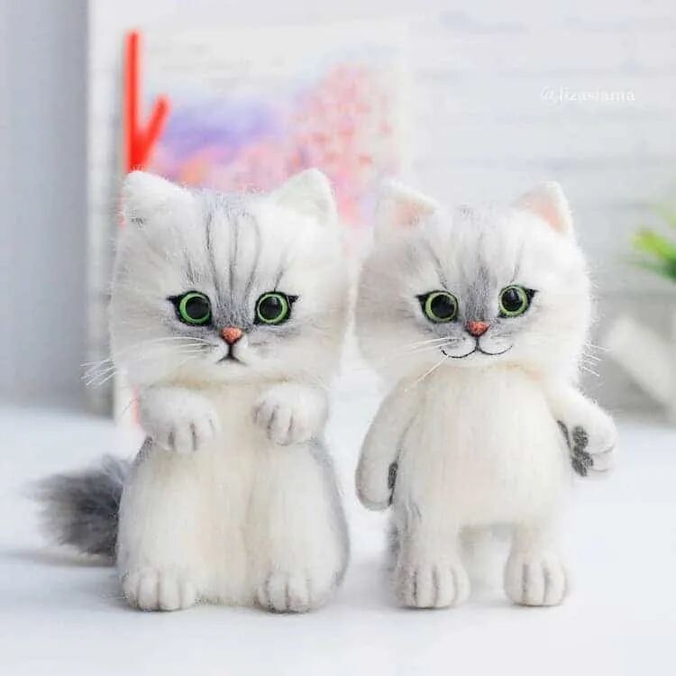 接下来小绛就要为大家介绍一位来自俄罗斯的女孩伊丽莎白·德莱克托斯卡娅,创造了可爱的毛毡猫,它们看起来就像活的一样,呆萌无辜的大眼睛,纤细的胡须,尖尖的耳朵,以及逼真的皮毛,每一只都不一样,但每一只都同样可爱呆萌,尤其是它们的软垫爪子,绝对萌翻你的心。