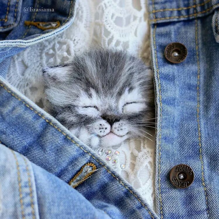 别看它们小小的,据了解,伊丽莎白每制作一只猫咪,大概需要花费三到七个小时的时间,正因为耗时久,她的作品才能做到如此逼真,乍一看像是用相机拍下的真实的猫咪照片,再仔细欣赏,才发现,它们比真正的猫咪还要可爱得多。