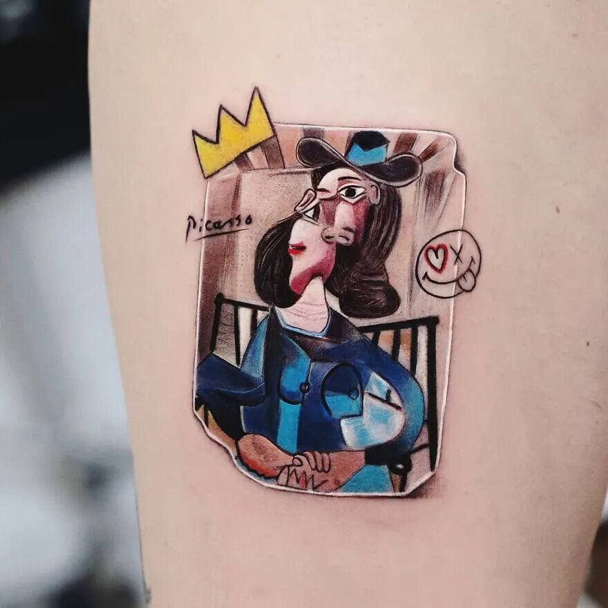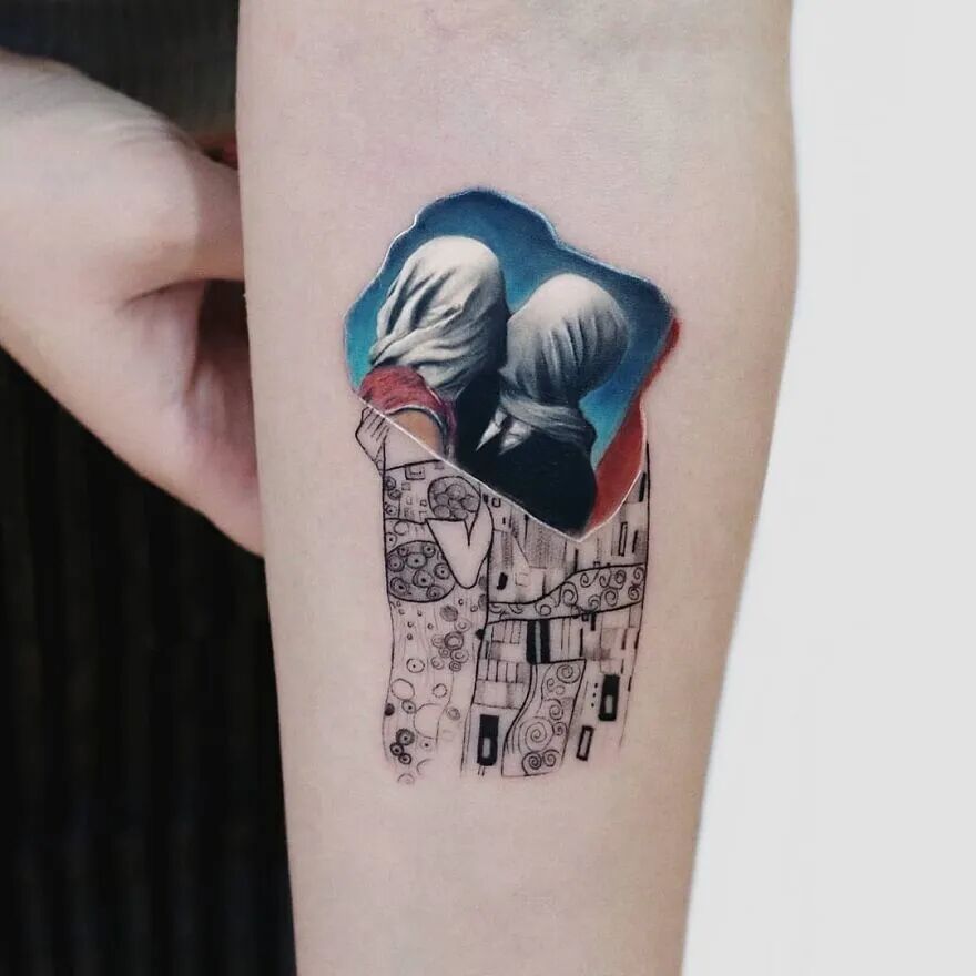 来自伊斯坦布尔的哈坎·阿迪克就是一位非常厉害的纹身艺术家,他的作品大都是极简风,但是又与色彩主义相混合。哈坎·阿迪克还会在自己的作品中,融入各种不同主题的元素,比如绘画、电影、动漫等等,然后结合我们的现实生活,形成一个个有趣的场景。