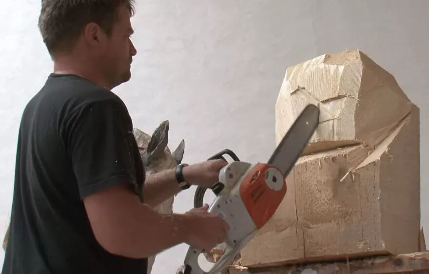 我们常见的木雕师所用的工具,大抵就是木锉、敲锤、斧子、锯子等,而今天油画酱想给大家介绍的这位木雕艺术家厉害了,他仅用电锯,就把一块块呆板的木头变成了一个个漂亮的雕塑。