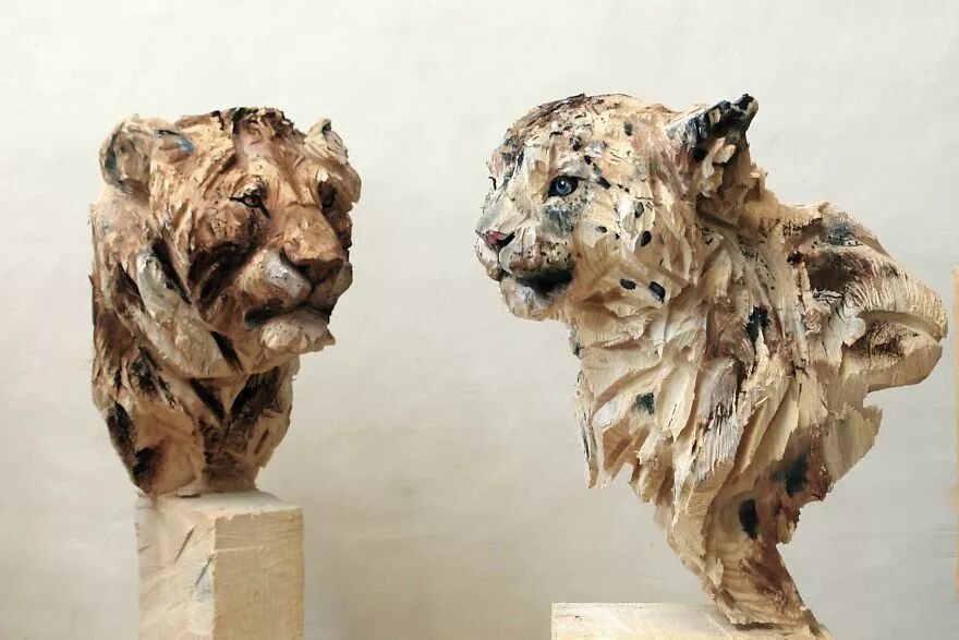 之后Rebetez定居瑞士,开始了自己的木雕生涯。他用电锯雕刻出一个个生动形象的动物雕塑,逼真的造型以及精巧的细节,受到人们的喜爱。