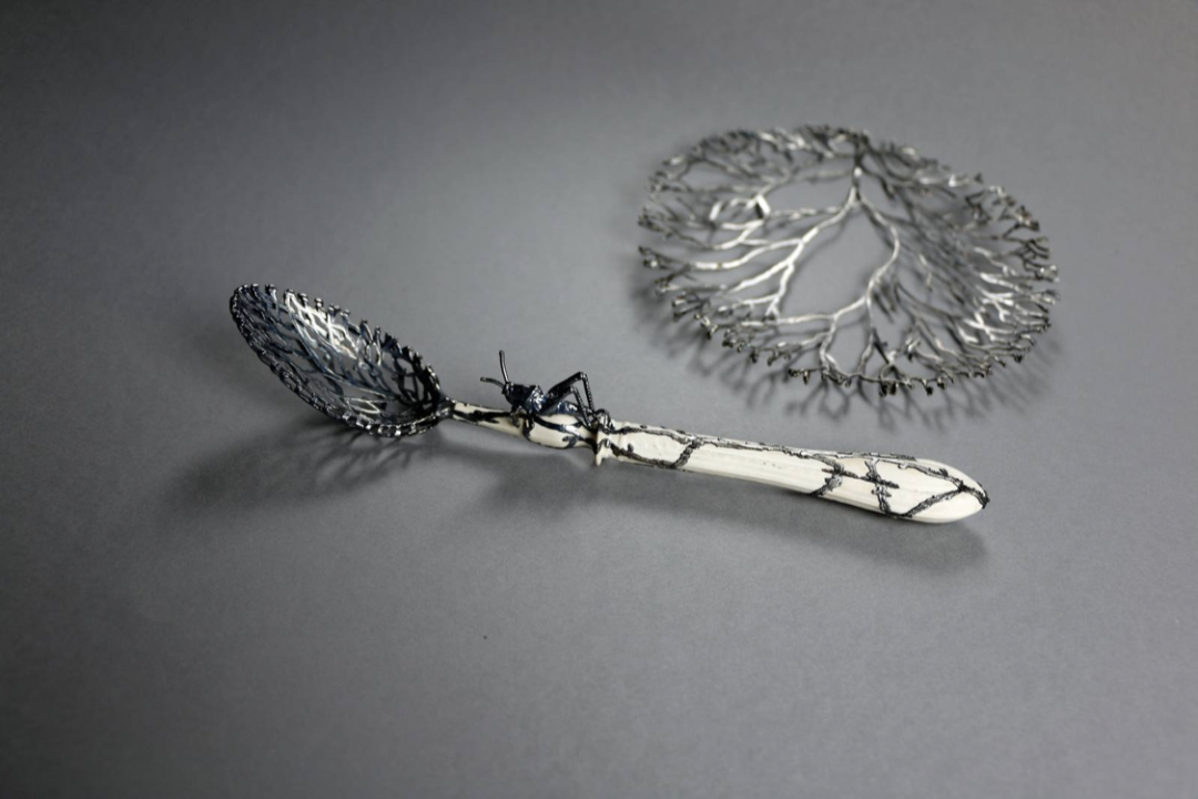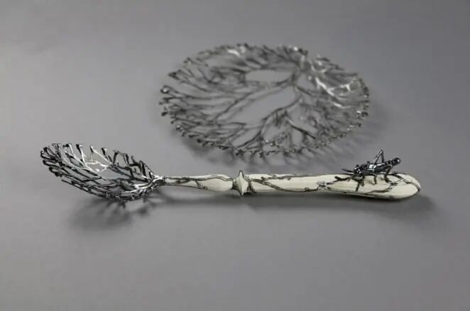 珠宝和餐具,一个是为了获得美妙的观感和浪漫的感受,一个则是为了便捷和实用,让人好好吃饭,二者看上去似乎永远不会有交集,但是在艺术家的世界里,没有什么是不可能的,他们乐意尝试一切的组合,让不合理变得合理。