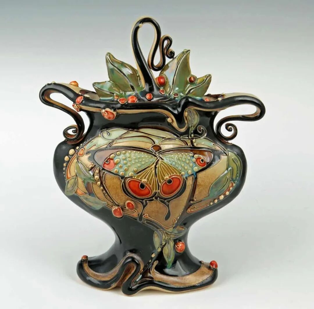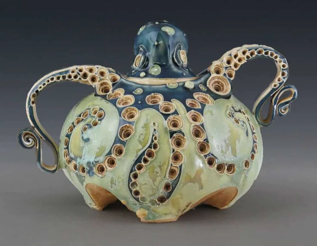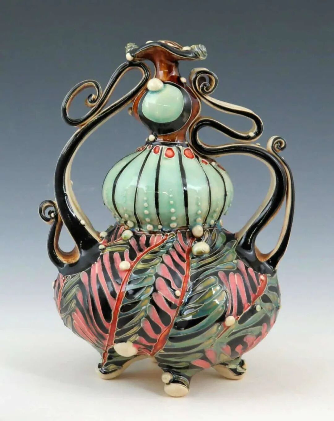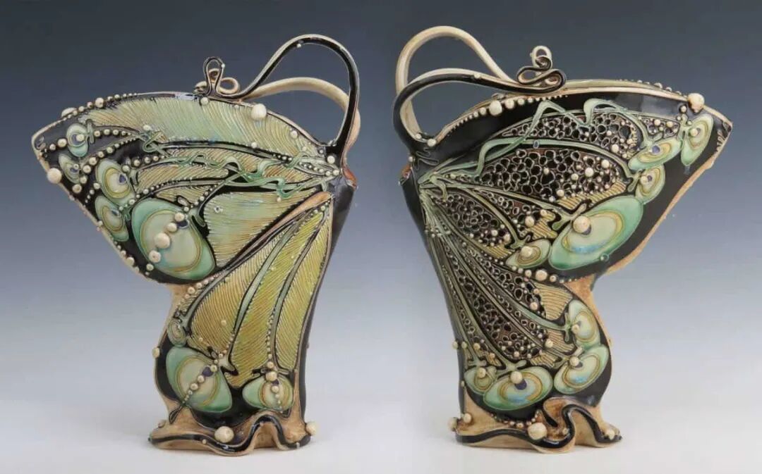 作为一名成熟的陶瓷艺术家,卡罗尔·朗将对大自然的喜爱融入到她的陶瓷制品中,在这些陶瓷制品里,我们可以看到蝴蝶造型、章鱼造型和葫芦造型的瓷器,这些融合动物元素和植物元素的陶瓷制品,给人一种怪异的美感,我们可以看到这些陶瓷制品做工非常精良,造型也可圈可点,可是,最终完成的陶瓷作品,却让人说不上好看。