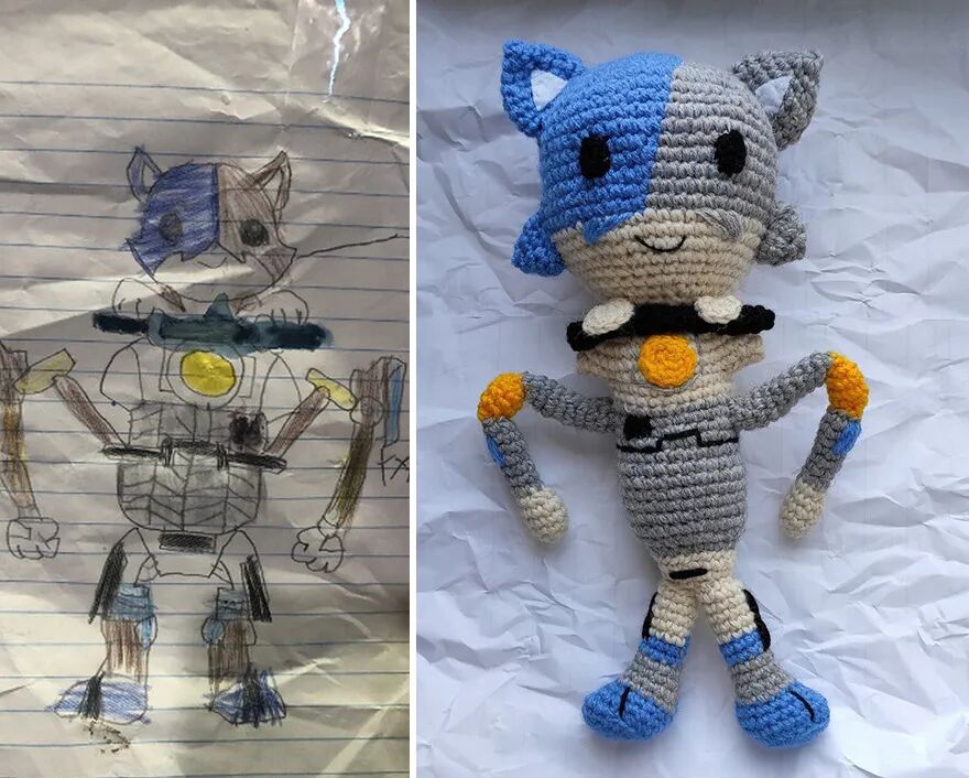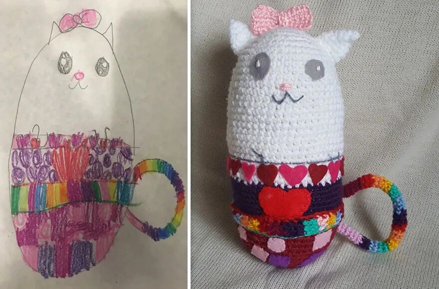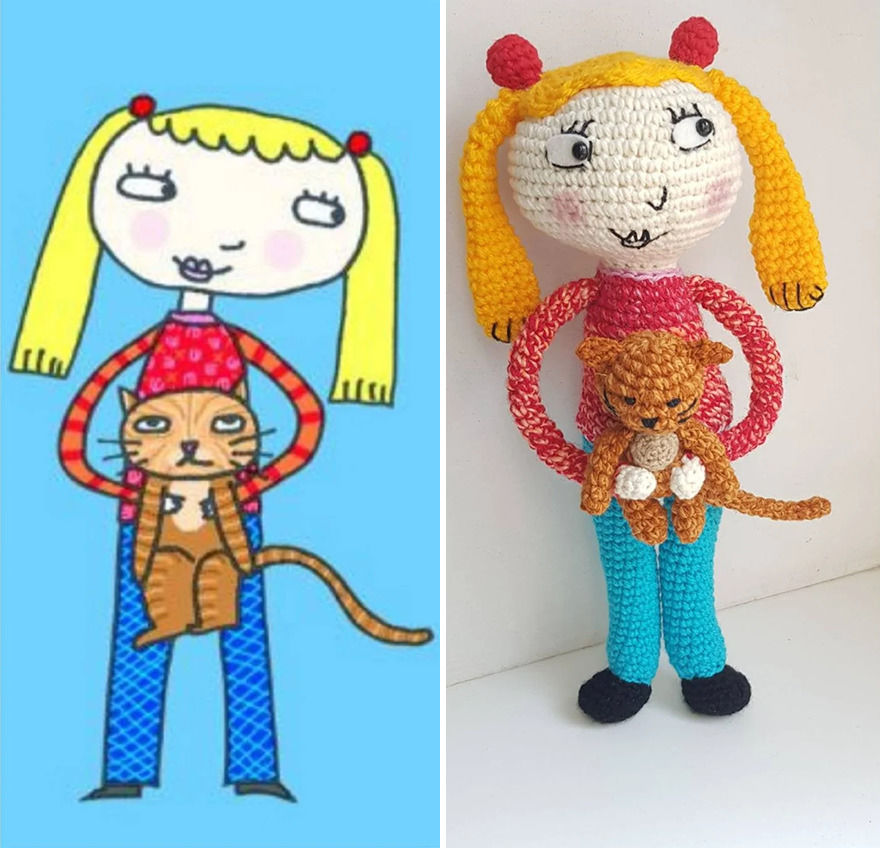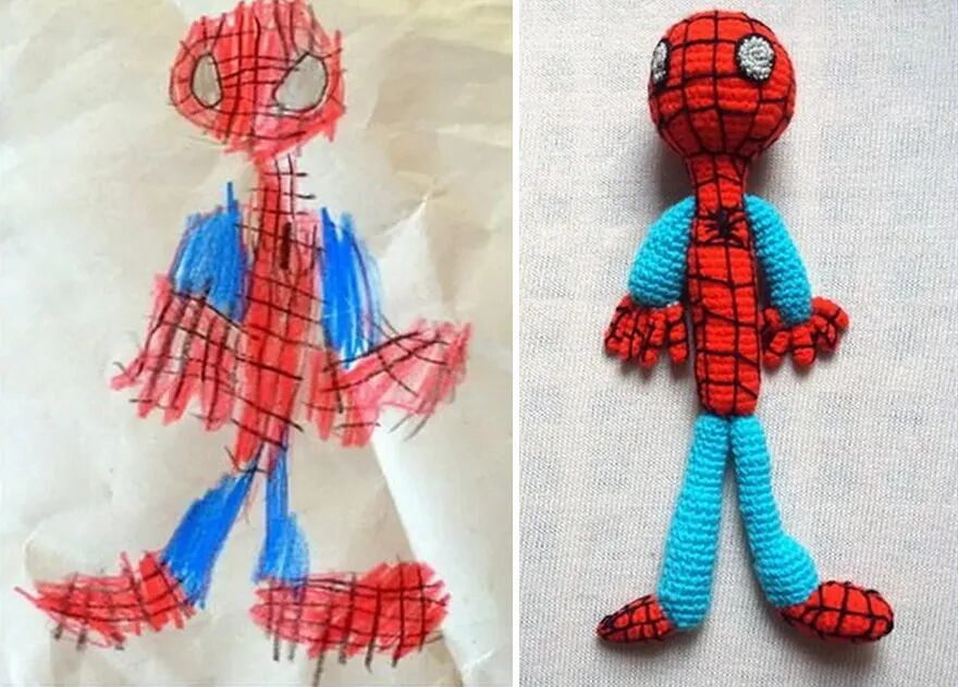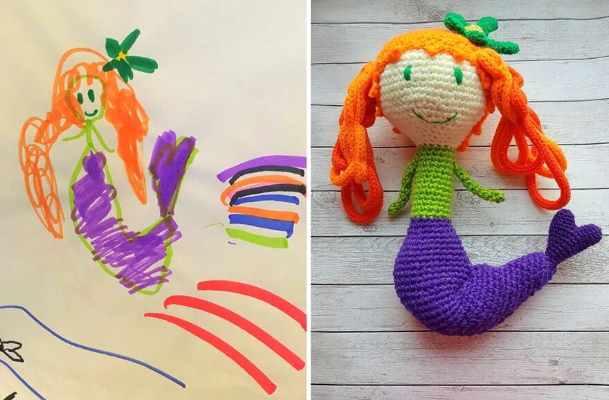 “他们是在用画笔探索世界,表达他们眼中的事物,我很喜欢孩子们的想象力。”有一天,维奥莱塔突发奇想,如果将他们画中的不明生物做成实物,一定能让他们成就感倍增。于是,这位艺术家开始在孩子的涂鸦画作的基础上,进行二次创作。钩针和毛线,是维奥莱塔使用的所有材料,她把孩子们的画变成了3D版的针织玩具,尽管这些玩具看上去丑丑的,但在孩子眼中它们是最好看的。
