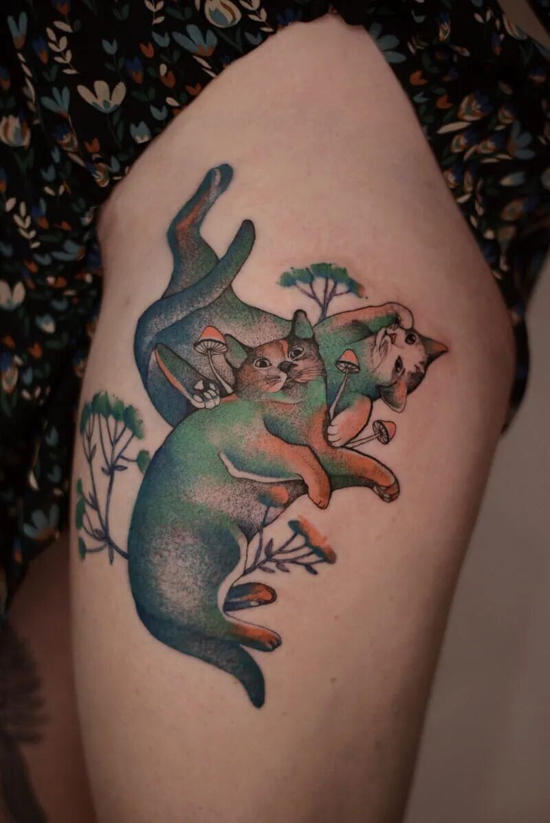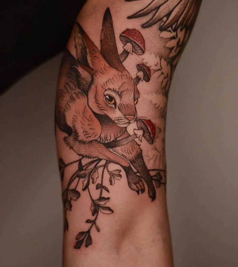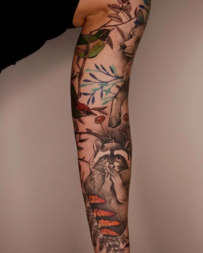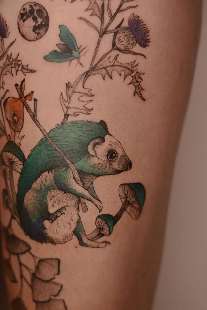 乔安娜·维斯卡的作品以精美的插画而著称,她的作品经常是以一个系列而创作的,今天小绛要跟大家分享的,就是一组童话风格的纹身图案,她将各种好玩的元素与植物,画成插画的形式融合在一起,满满的自然气息扑面而来,背背包的袋鼠、喝水的小浣熊、各种天马行空的动植物群,让人仿佛置身于一个童话故事之中。