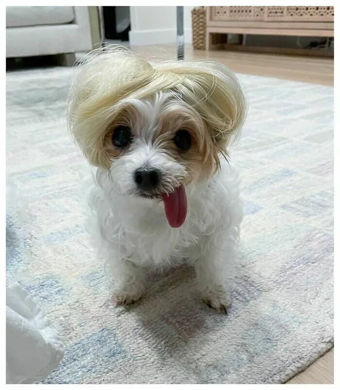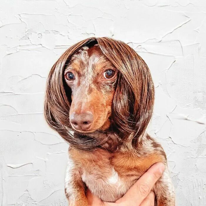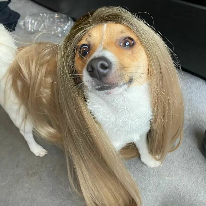 最近,网上就有这样一个挑战,虽然有点无聊,但是最终效果还是十分有趣的,狗主人们给他们的狗狗戴上各种颜色的假发,然后给它们拍照,让它们看起来像是人类的样子。