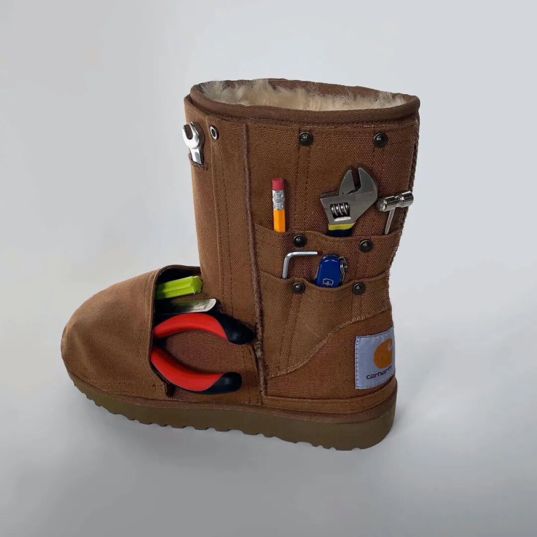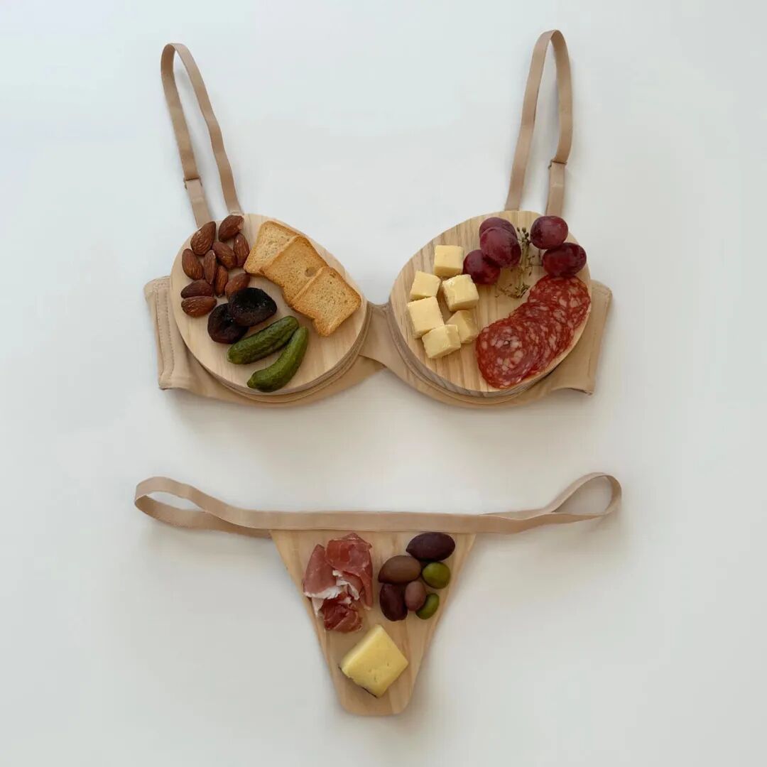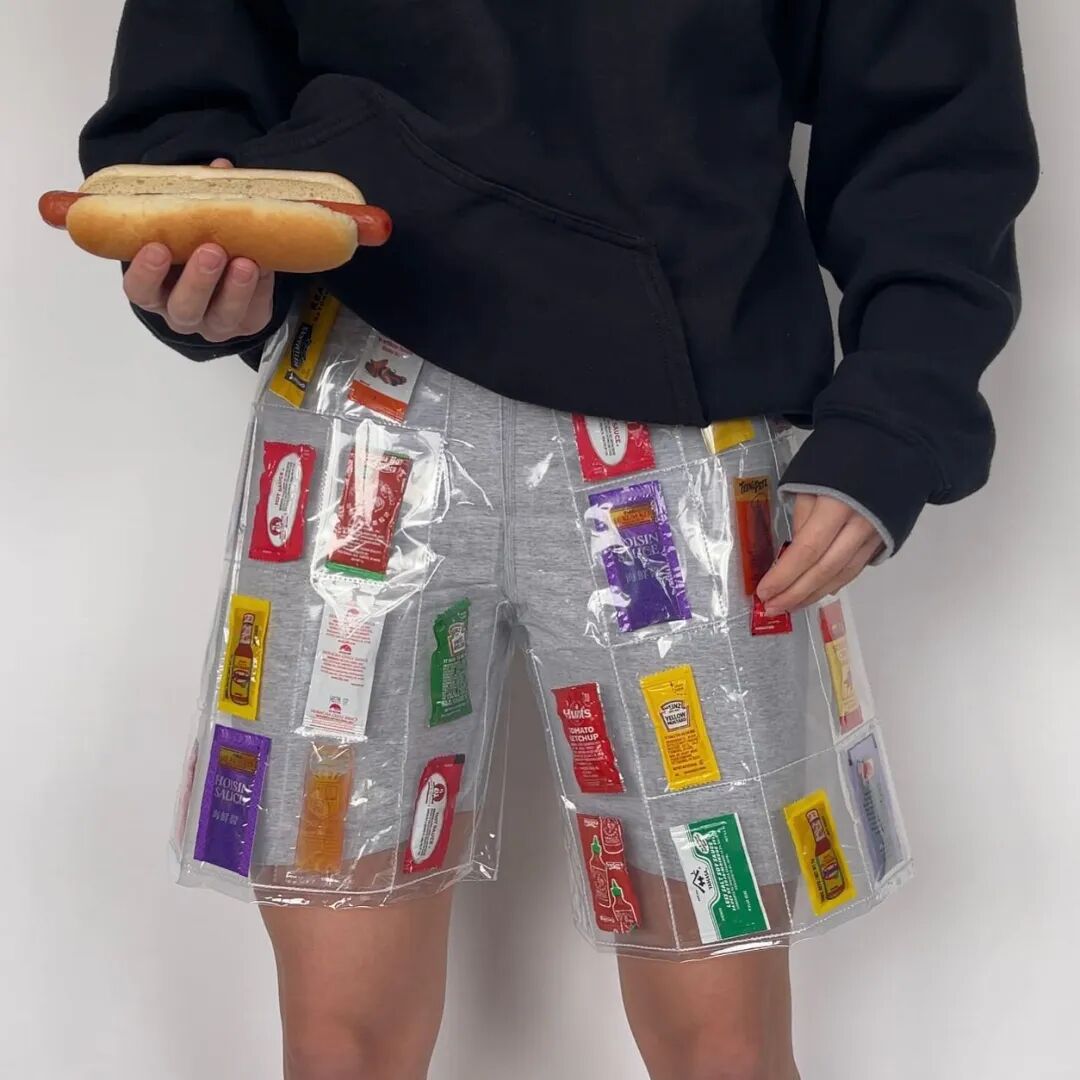这些时尚服饰的实用性体现在,将排球做成拖鞋,还是把雪地靴变成工具包,让它们增加了另外一种功能。她还设计了一款特别的文胸,由两片面包组成,在饿了的时候还可以拿出来吃掉,除此之外,妮可·麦克劳林还制作了一条面包短裤,为了配合这个面包短裤,她还做了一款调料包短裤,这些设计处处都充满了生活感,可以称得上十分居家了。