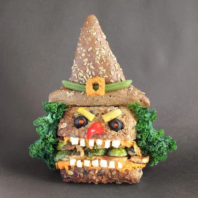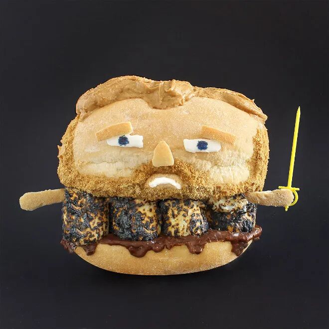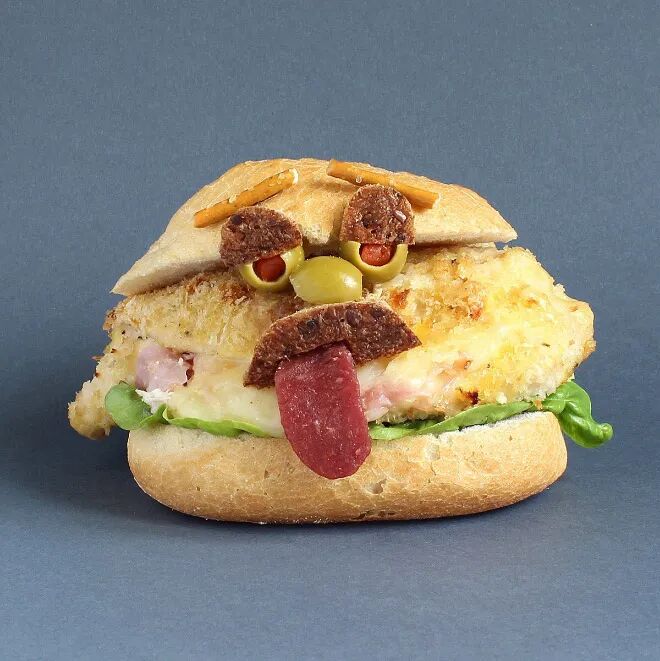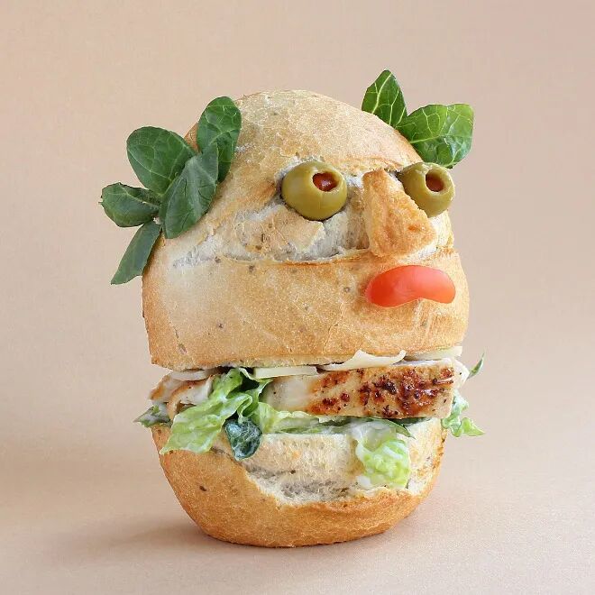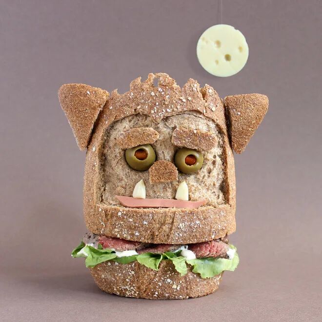 这些由面包组成的怪兽,每一个都十分有趣,创意十足且不缺少细节,诞生这个创意项目的想法,来源于她午餐时间的食物,这些食物主要是各种三明治、汉堡和面包,于是她利用手头有限的材料,再加上一点点创意,一份午餐就变成了一个有趣的怪兽造型。