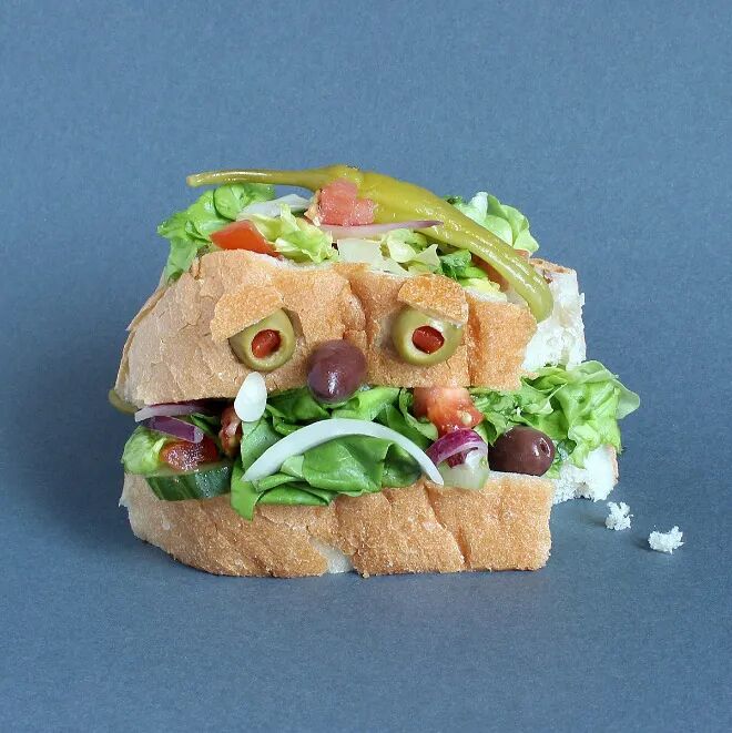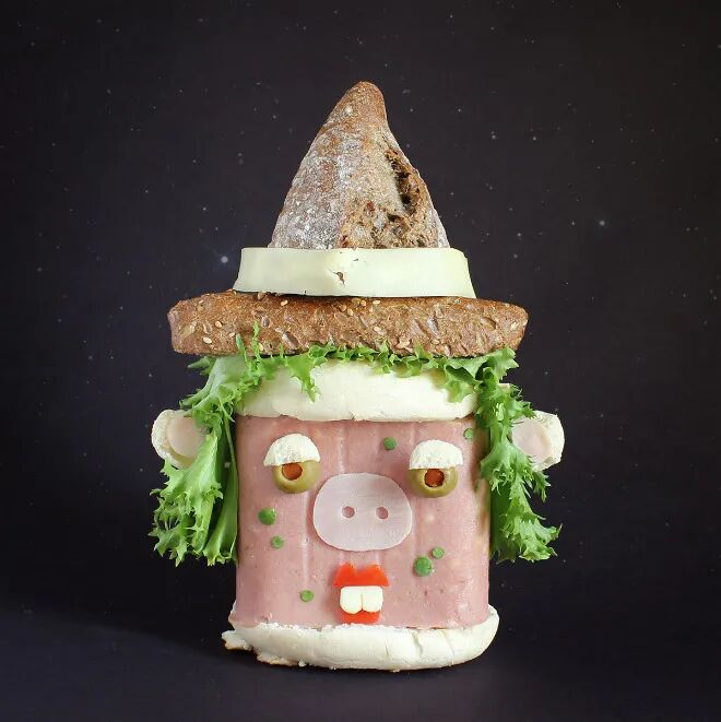 在2012年前后,卡西娅·豪普特就开启了一个创意项目,这个项目被她命名为《食物怪兽》,这个系列作品主要以各种面包为主要材料,搭配果酱和蔬菜,通过裁剪和拼贴,组成一个个怪兽的模样,呆呆的表情和创意非凡的组合,让人看了忍俊不禁。