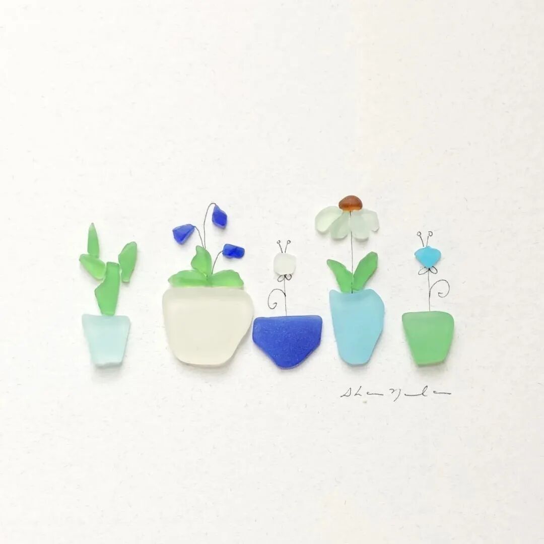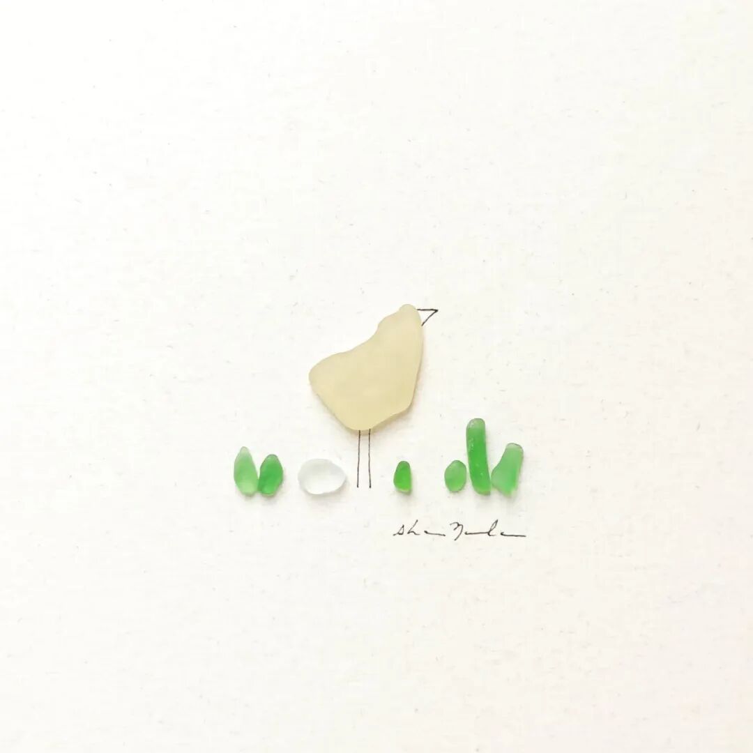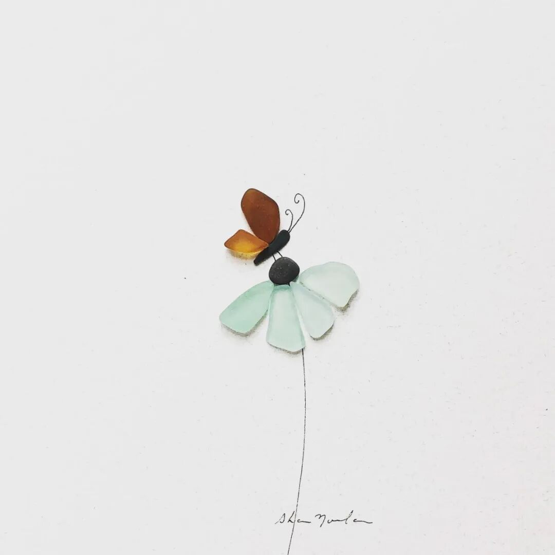 在莎朗·诺兰的作品中,主要以鹅卵石和海玻璃为主,每一种材料都是天然形成,在她看来这些石子本身就十分完美,只需要根据它们的形状和颜色进行组合,就可以形成一个作品,不过,每一种材料,艺术家在创作的时候都尽量少用,因为莎朗·诺兰认为,在艺术创作中,空间是也是一种材料,它的作用十分重要,也正因如此,这些石子画作给人一种空灵的美感。