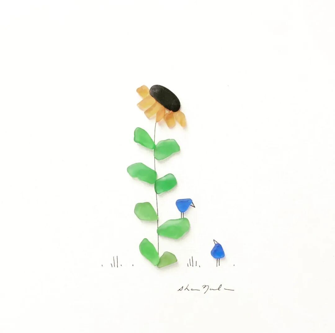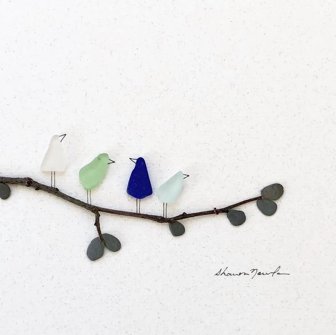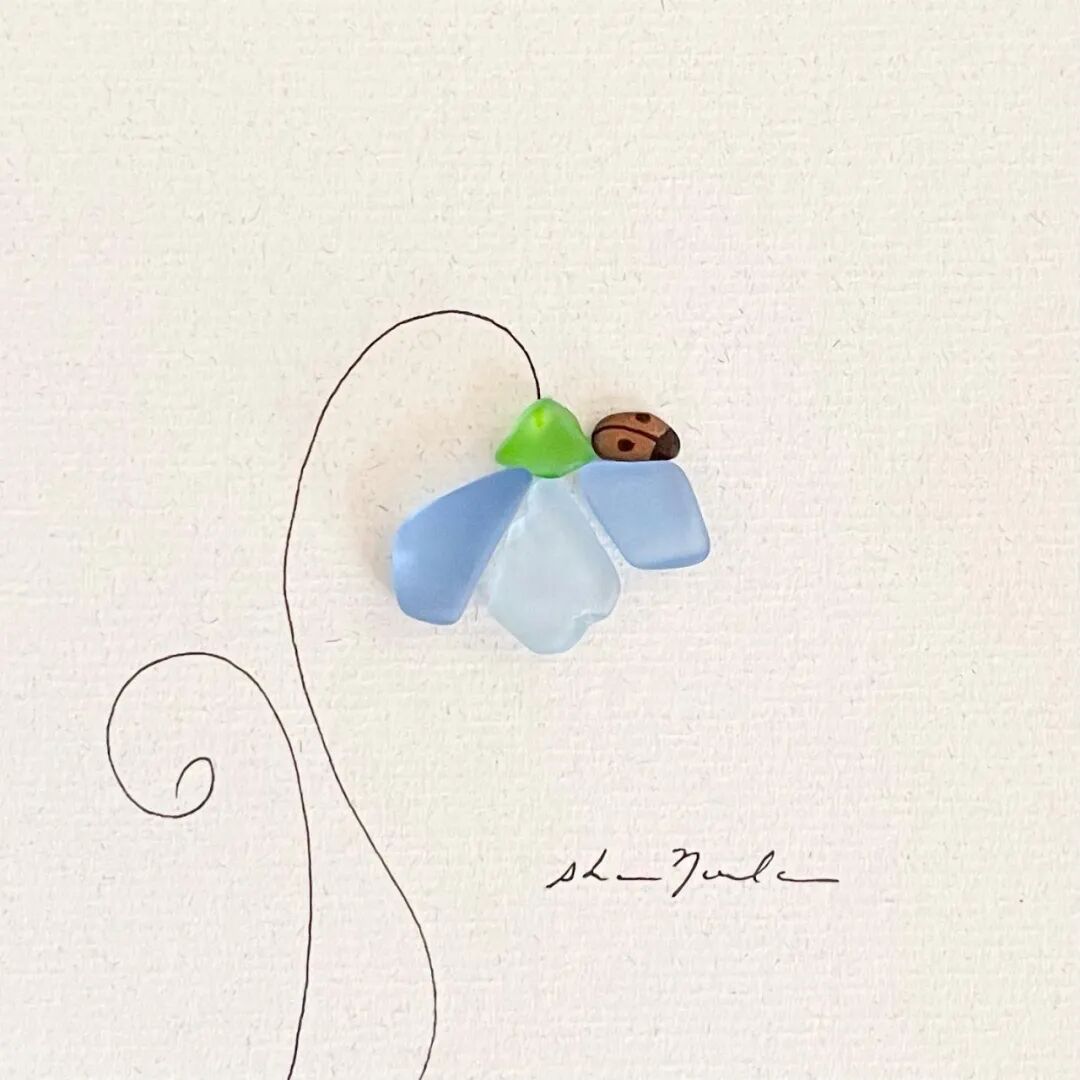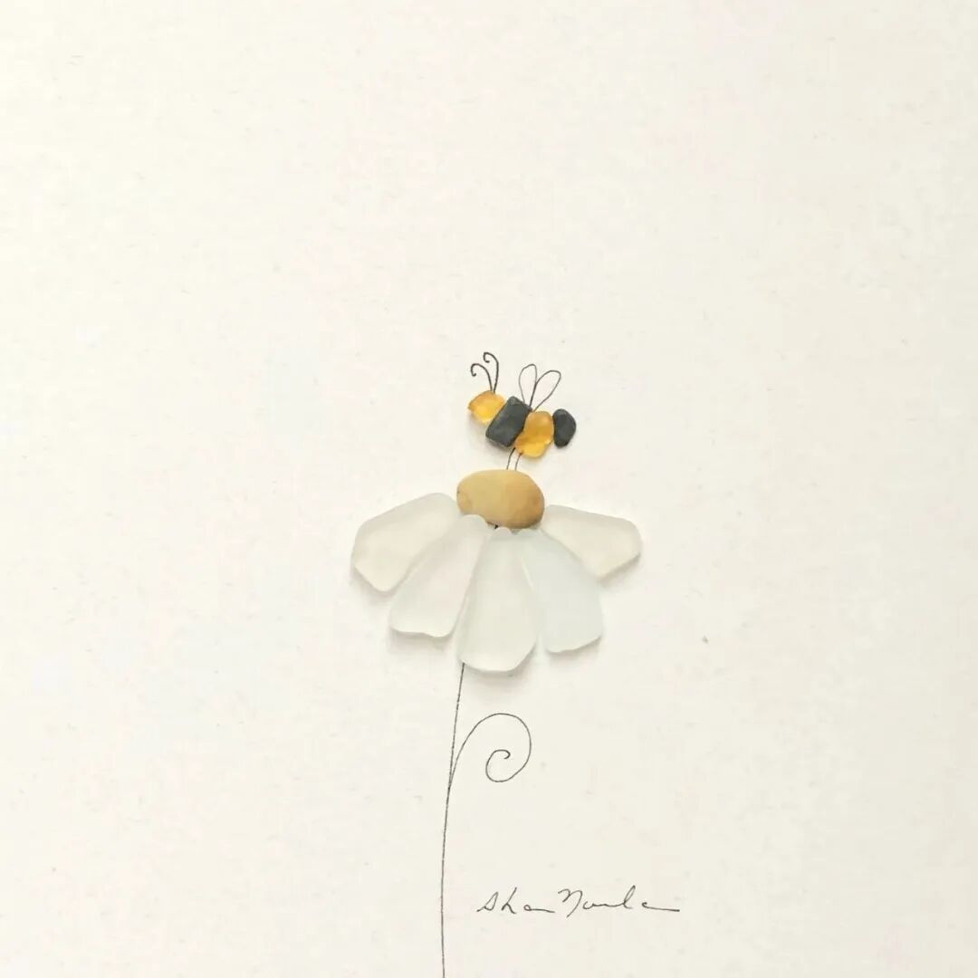 在莎朗·诺兰的作品中,主要以鹅卵石和海玻璃为主,每一种材料都是天然形成,在她看来这些石子本身就十分完美,只需要根据它们的形状和颜色进行组合,就可以形成一个作品,不过,每一种材料,艺术家在创作的时候都尽量少用,因为莎朗·诺兰认为,在艺术创作中,空间是也是一种材料,它的作用十分重要,也正因如此,这些石子画作给人一种空灵的美感。