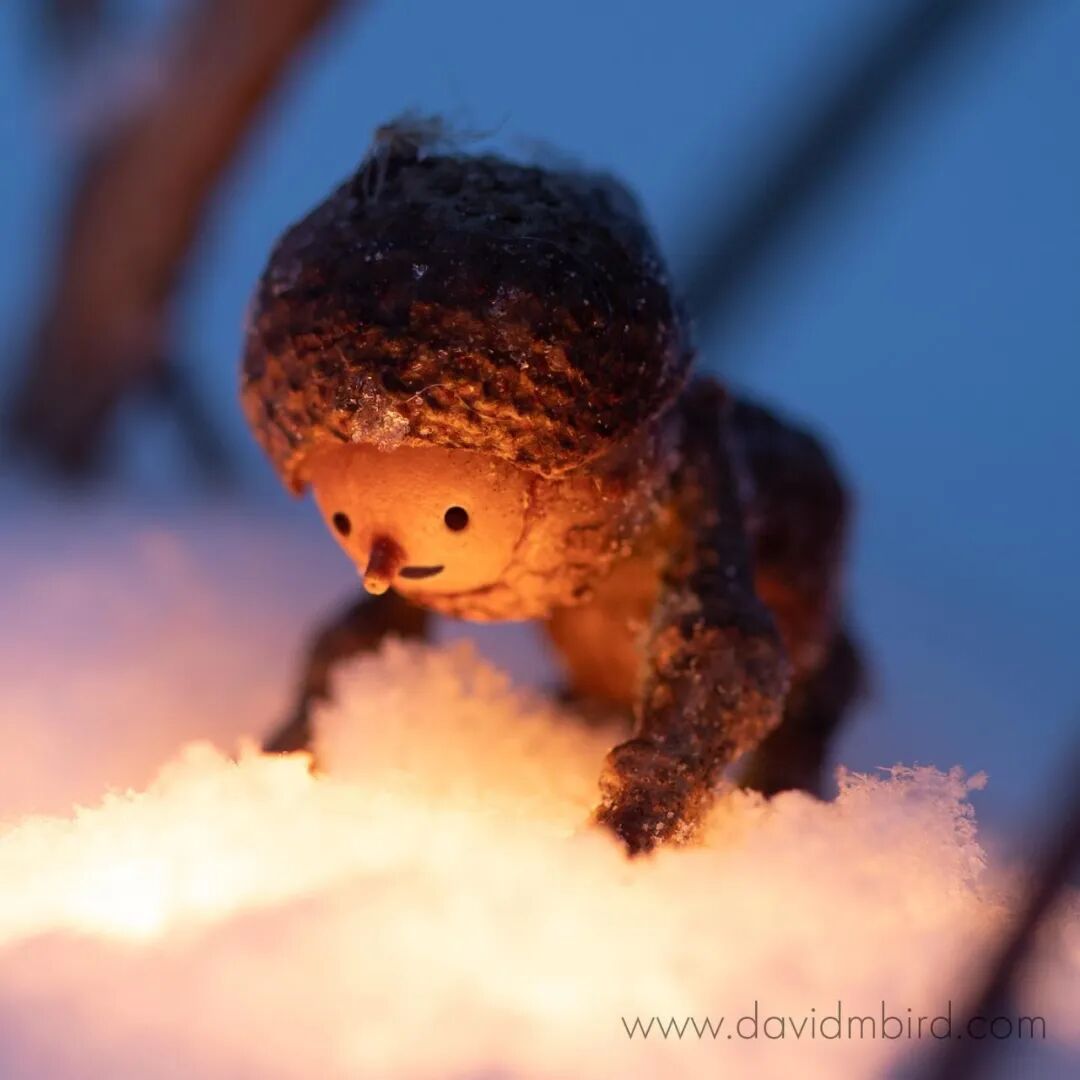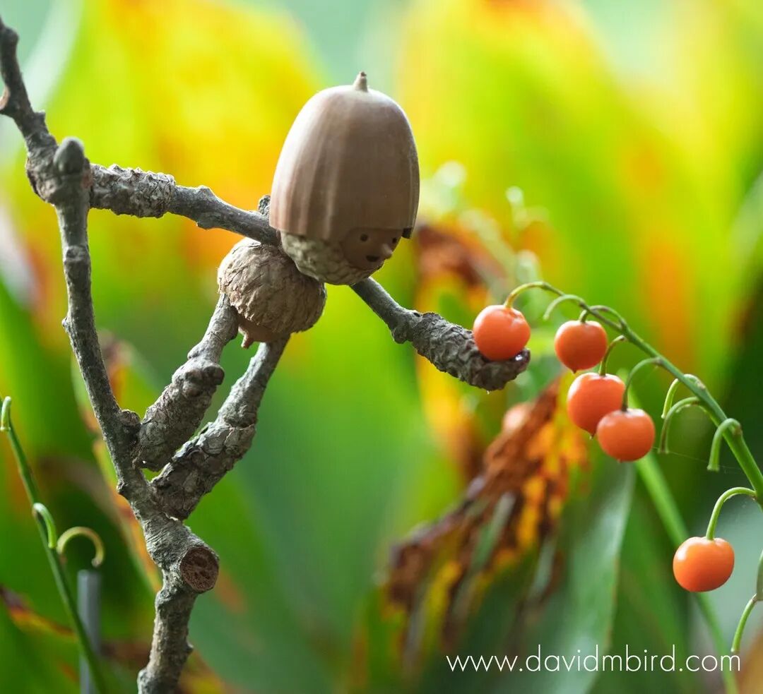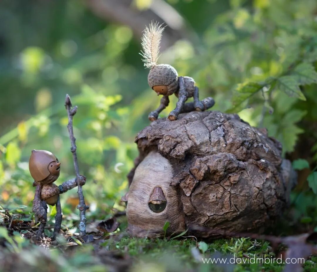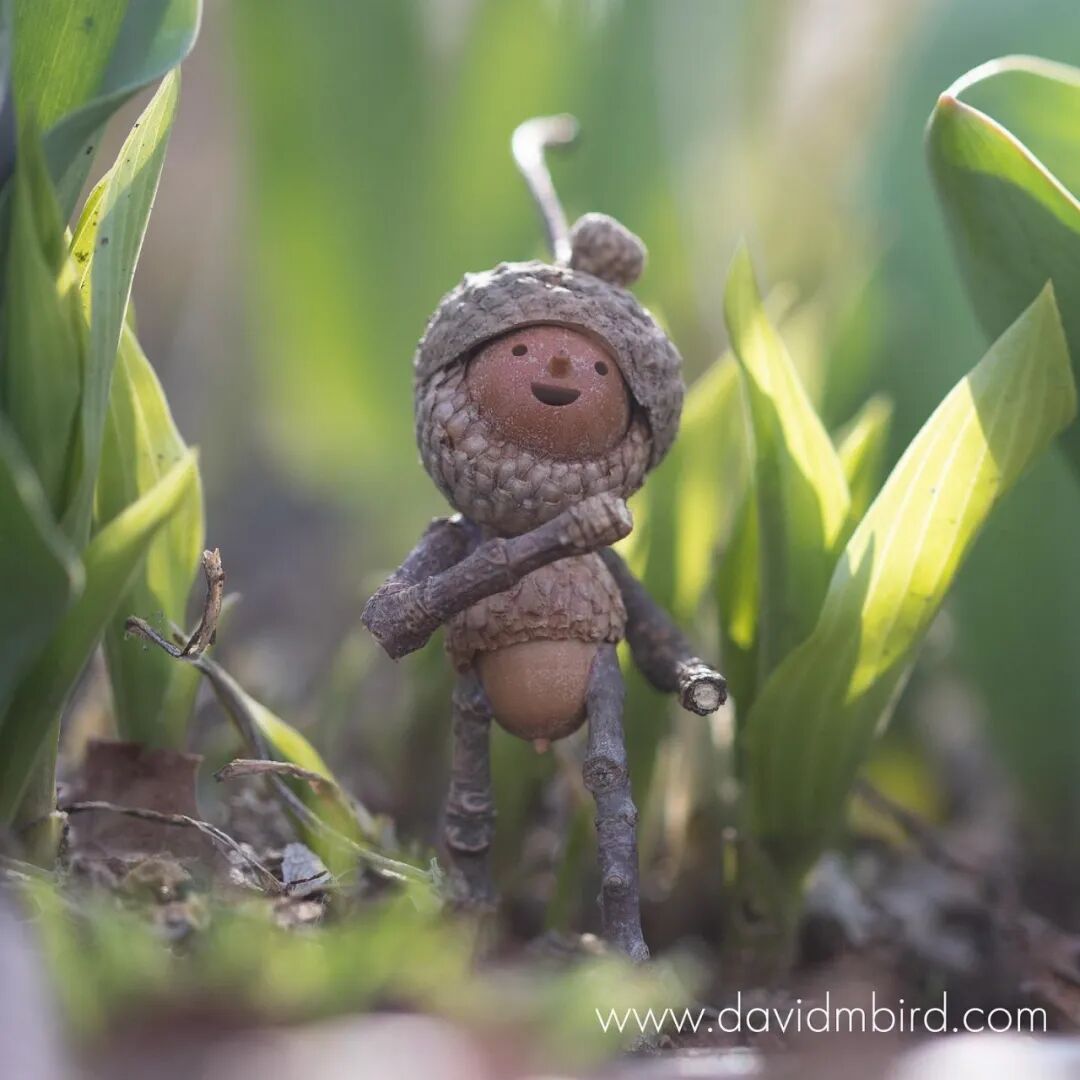 在辞去玩具设计师的工作后,大卫·伯德成为一位自由职业者,主要制作我们前面提到的木棍和坚果“手办”,然后用这些制作好的卡通形象,去设计有趣的场景,他将这些作品取名为“Becorns”,这个单词有很多含义,其中一个是“成为”的意思,小绛猜想他是想将这些木棍小人成为一个故事,一个温暖和治愈所有人的童话故事。