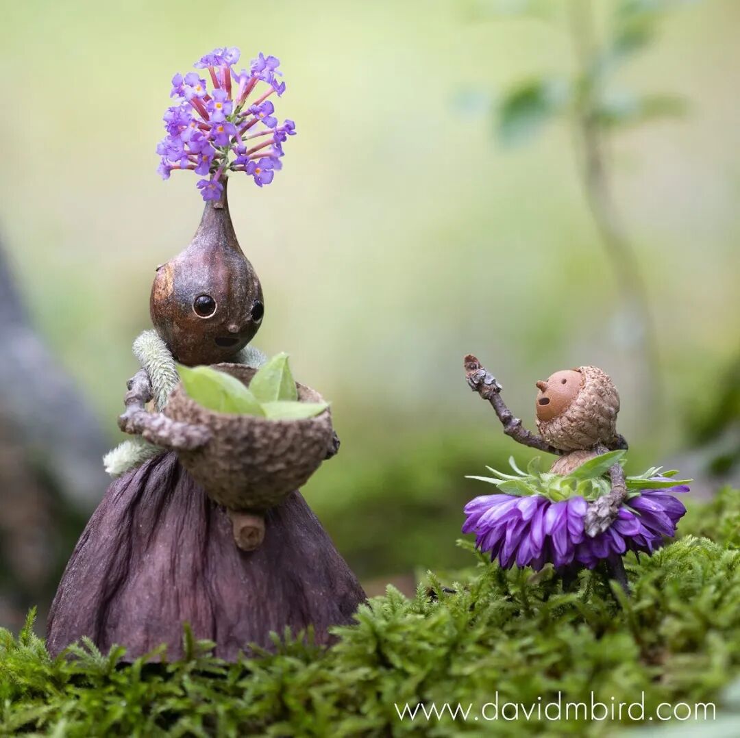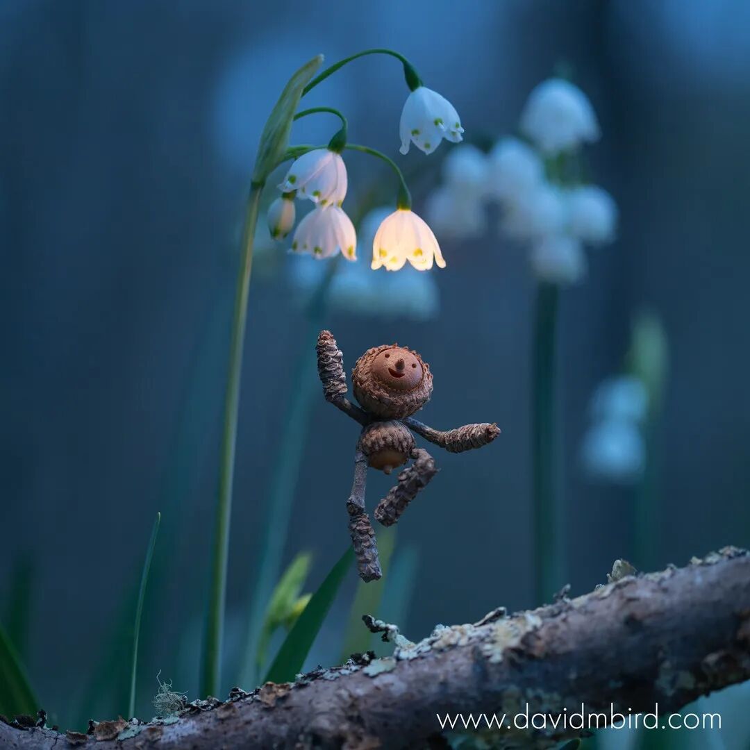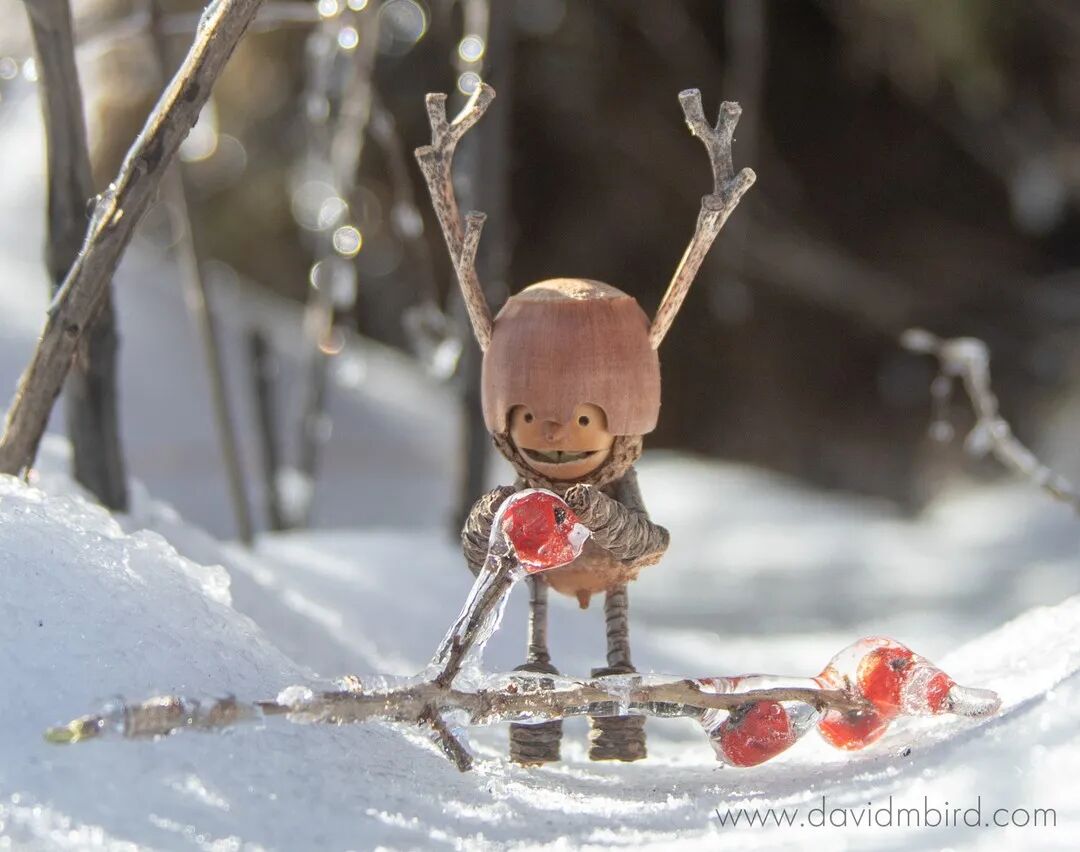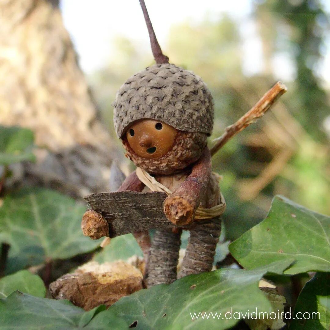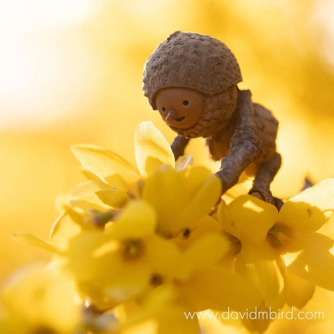 在辞去玩具设计师的工作后,大卫·伯德成为一位自由职业者,主要制作我们前面提到的木棍和坚果“手办”,然后用这些制作好的卡通形象,去设计有趣的场景,他将这些作品取名为“Becorns”,这个单词有很多含义,其中一个是“成为”的意思,小绛猜想他是想将这些木棍小人成为一个故事,一个温暖和治愈所有人的童话故事。
