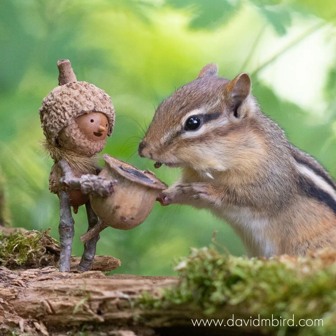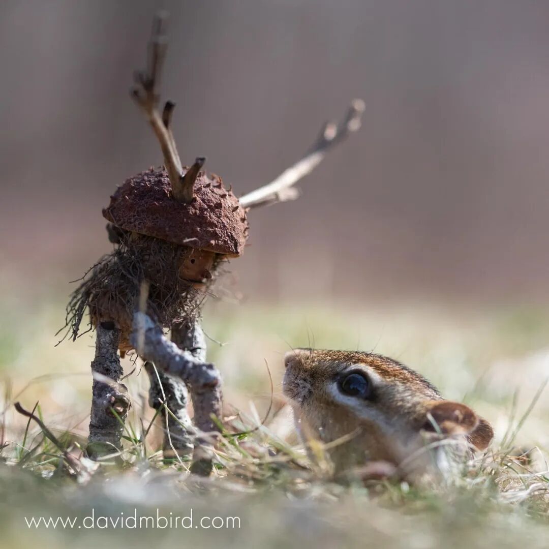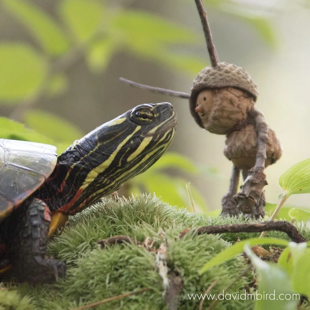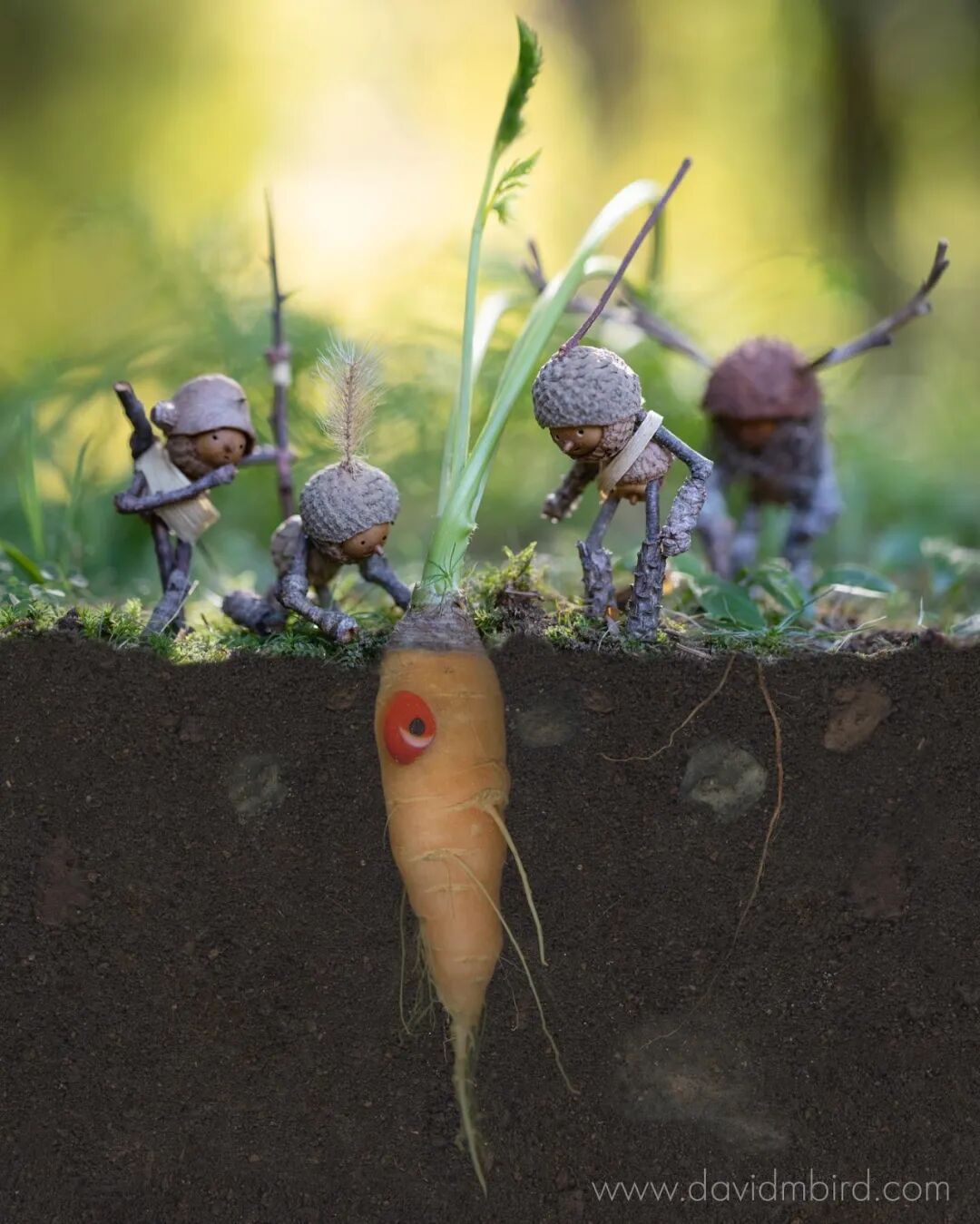 在辞去玩具设计师的工作后,大卫·伯德成为一位自由职业者,主要制作我们前面提到的木棍和坚果“手办”,然后用这些制作好的卡通形象,去设计有趣的场景,他将这些作品取名为“Becorns”,这个单词有很多含义,其中一个是“成为”的意思,小绛猜想他是想将这些木棍小人成为一个故事,一个温暖和治愈所有人的童话故事。