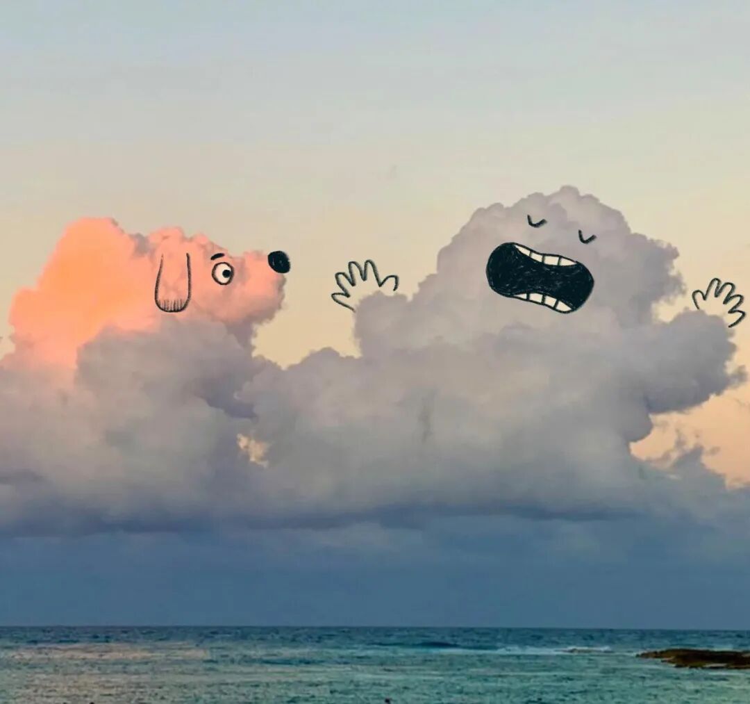 从2020年开始到今天,克里斯·贾奇和他的女儿已经创作了数百幅精彩有趣的云朵照片,小绛在这些照片中精选出50幅最为有趣的作品出来,供大家欣赏,相信这些可爱又有趣的云朵创意,一定会治愈我们焦虑不安的心情。