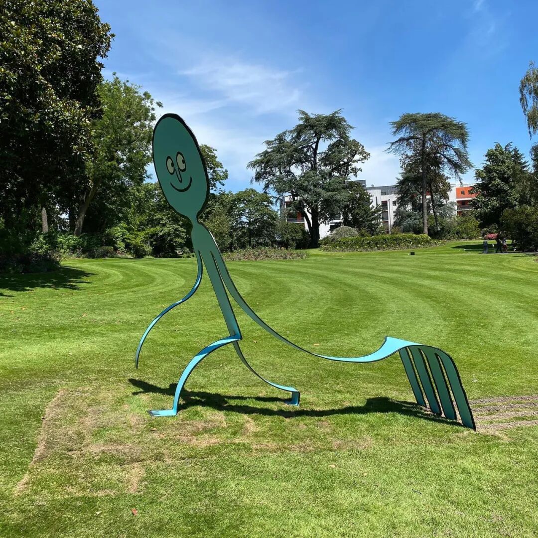 如果你在一个公园散步时,看到一个巨大的、色彩缤纷的卡通人物,他正在拿着叉子滑草,或者环抱一棵大树,不要感到惊讶,大胆地与他玩起来吧。接下来,我们就一起欣赏这位法国雕塑艺术家创作的这一组有趣的卡通雕塑作品。