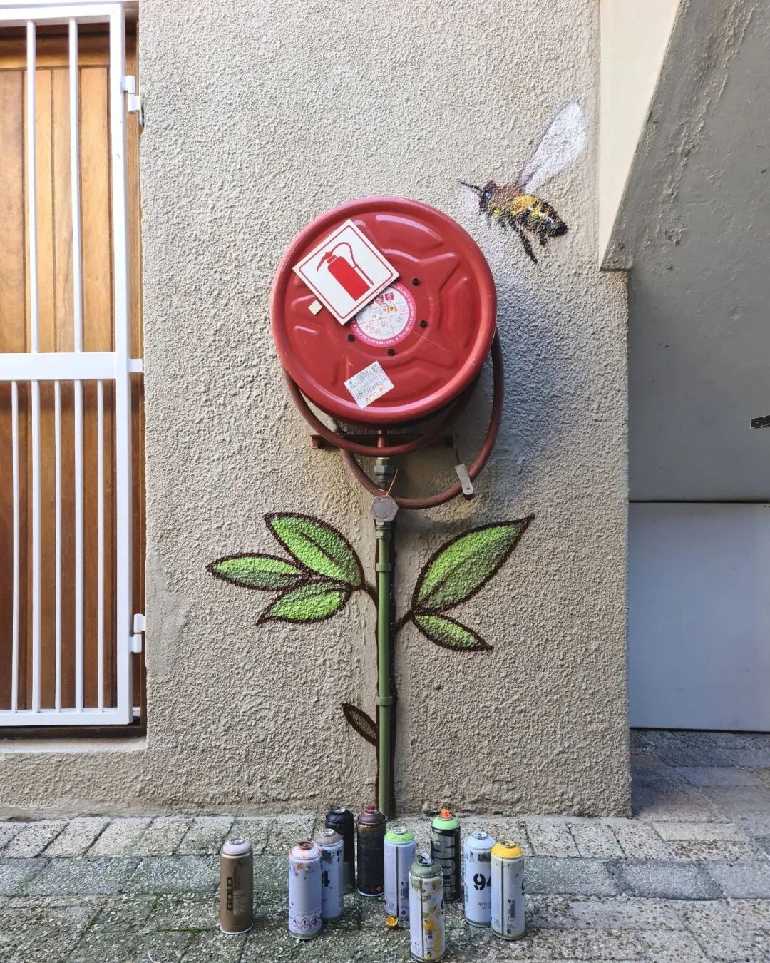 当法尔科的涂鸦画作与环境中的某一个建筑,或者某一棵植物进行巧妙地结合之后,就会出现一个更有意思的画面。谈到创作意图,这位艺术家直言,没有什么复杂的目的,就是想让人领略到艺术的魅力,同时还能感知到生活的美好。