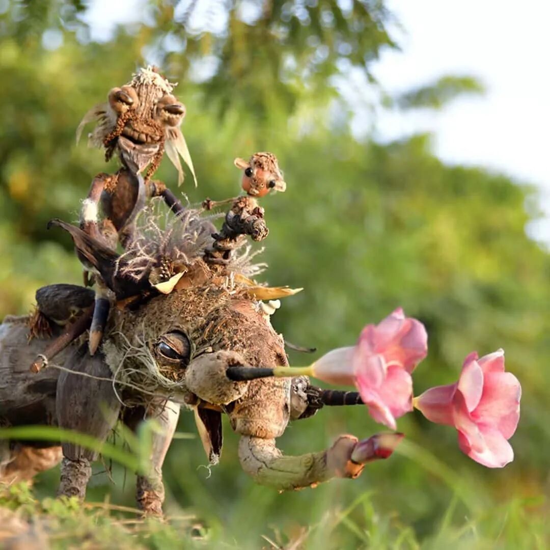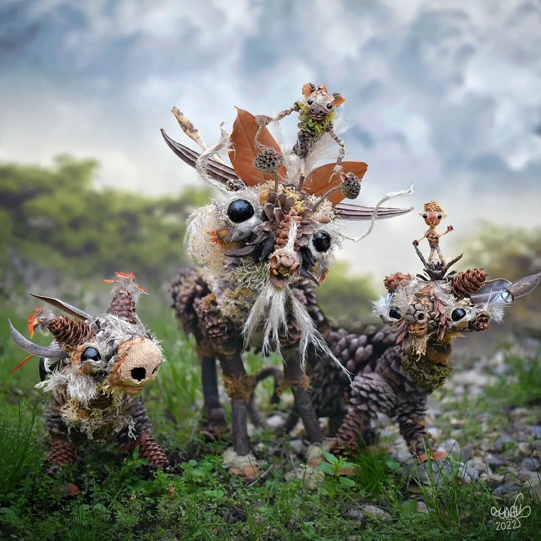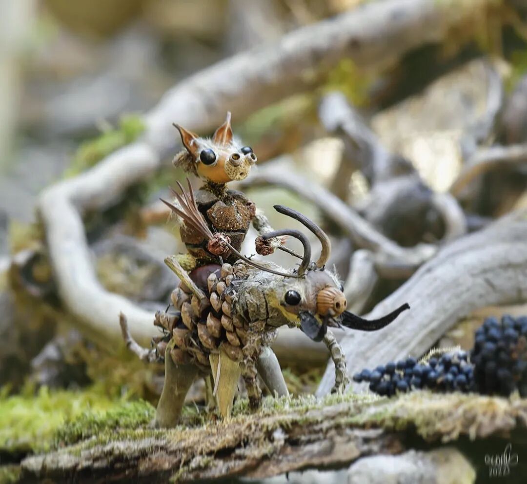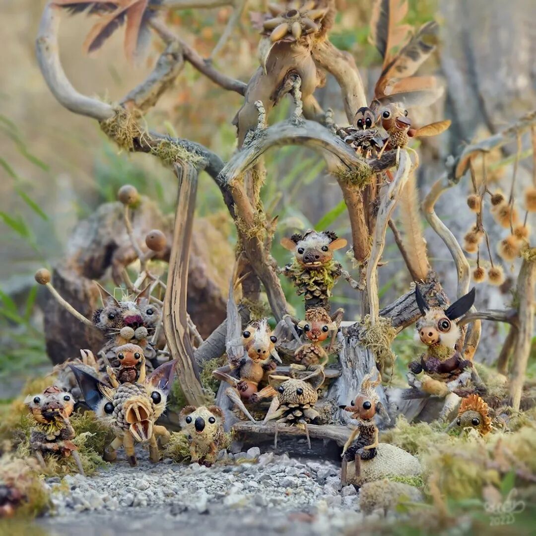 据这位艺术家介绍,随着制作不断推进,他的作品变得越来越丰富,使用的材料也随之变多,这也让他更深入森林中,这种良性循环,让他真的迷失在森林中乐此不疲,通过这些来源于森林中的各种事物,他制作出许多异域风格的作品十分迷人,让我们一起来欣赏一下吧。