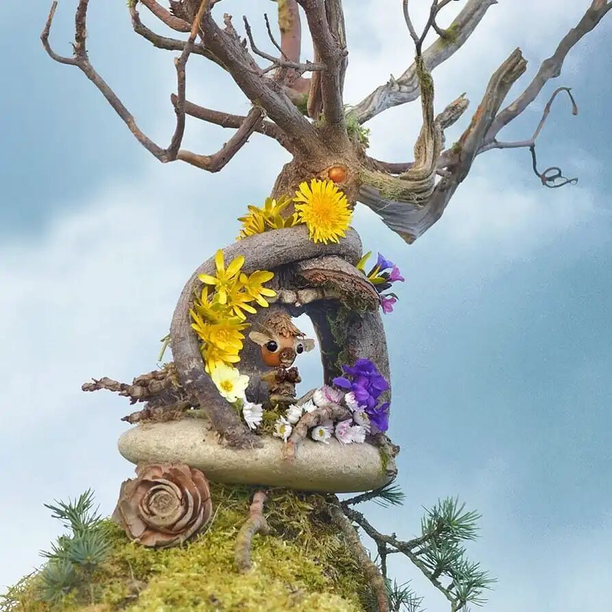 回到森林中,让他再一次找回了童年最美好的记忆,他可以在森林里游戏,也可以在森林中收集创作所需的所有资源。对于西尔万·特拉布特来说,森林中的果实、树枝和花朵都是珍宝,利用这些资源,他制作出一个个有趣的角色,还有许多好玩的创意场景。