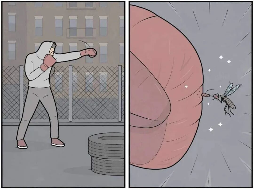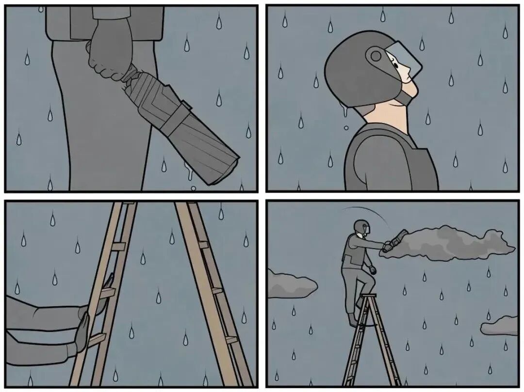 在没有任何文字辅助说明的情况下,他的作品却能让几乎每一个人都看懂,并品出其中的意味深长。“起初,我创作这类讽刺插画的原因只是觉得好玩,或者是我用来训练想象能力的一种方式,意外得到的效果是,它们能够激励和逗笑别人。我的动力更足了,让人笑远远不够,我要做的是带给人们更深刻的东西。”