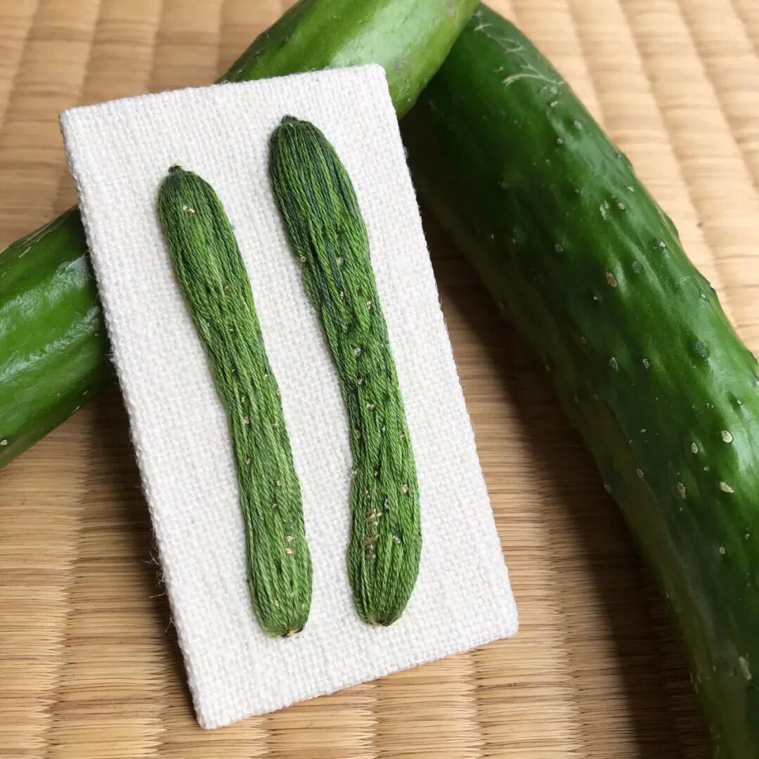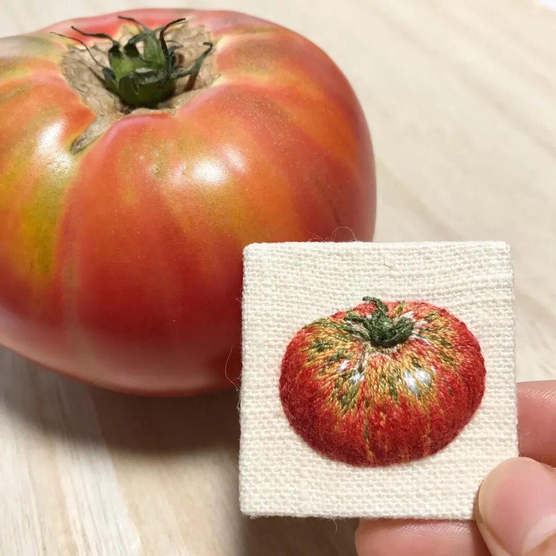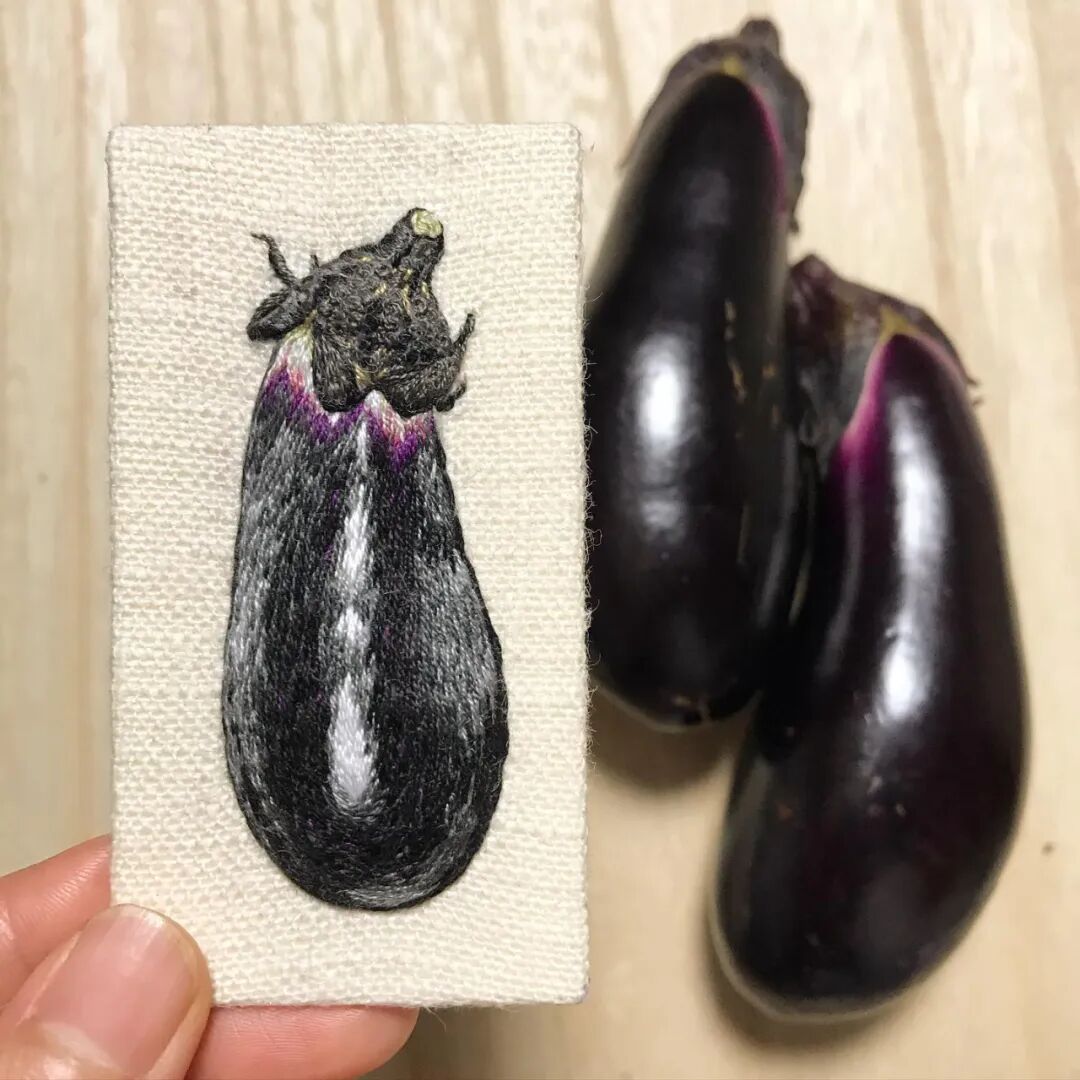 这是因为,这位日本艺术家精湛的刺绣技法,让这些3D蔬菜看上去十分逼真,在创作一个作品时,她首先会画出草图,然后是一丝不苟地刺绣过程,之所以看上去如此逼真,是因为她会用不同颜色的线,来营造阴影关系,就像绘画一样,在这位艺术家的手中,针就是画笔,彩色的线就是五颜六色的颜料。