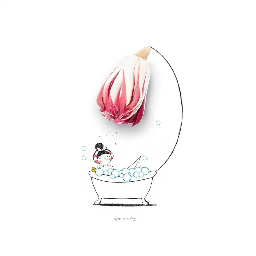 这位插画家从事插画创作时间很久,在创作初期,他只是作为平面设计师去制作一些风景和建筑作品,随着时间推移,他逐渐找到自己的创作风格,就一直延续到了今天。郝苏斯·奥尔蒂斯创作方式十分简单,擅长利用花朵、食物和一些日常用品去绘制插画作品,通过画作与简单事物结合后,形成可爱的场景,给人一种清新自然的感觉。