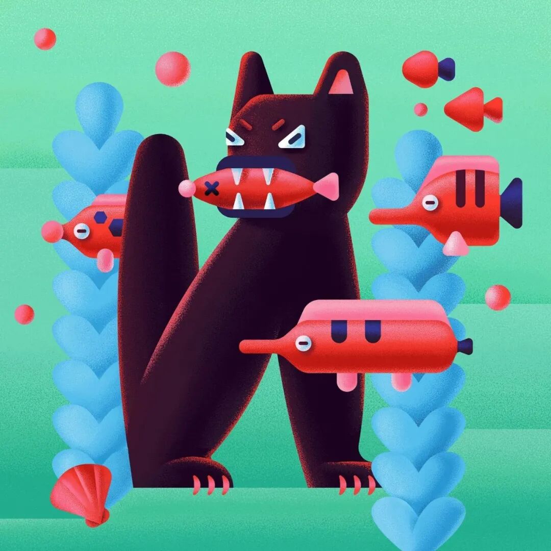 不过,在艺术家的笔下,野生动物大多都变得温柔可爱起来,居住在葡萄牙的玛丽·玛卡,就是一位善于绘制各种野生动物的插画家,她的插画作品以抽象、可爱和艳丽闻名,非常具有个人风格,即使放在让人眼花缭乱的数字插画中,也能让人一眼就能看出这些插画的特别之处。