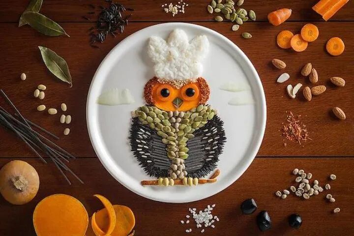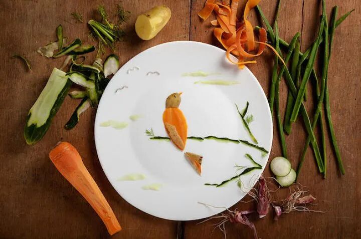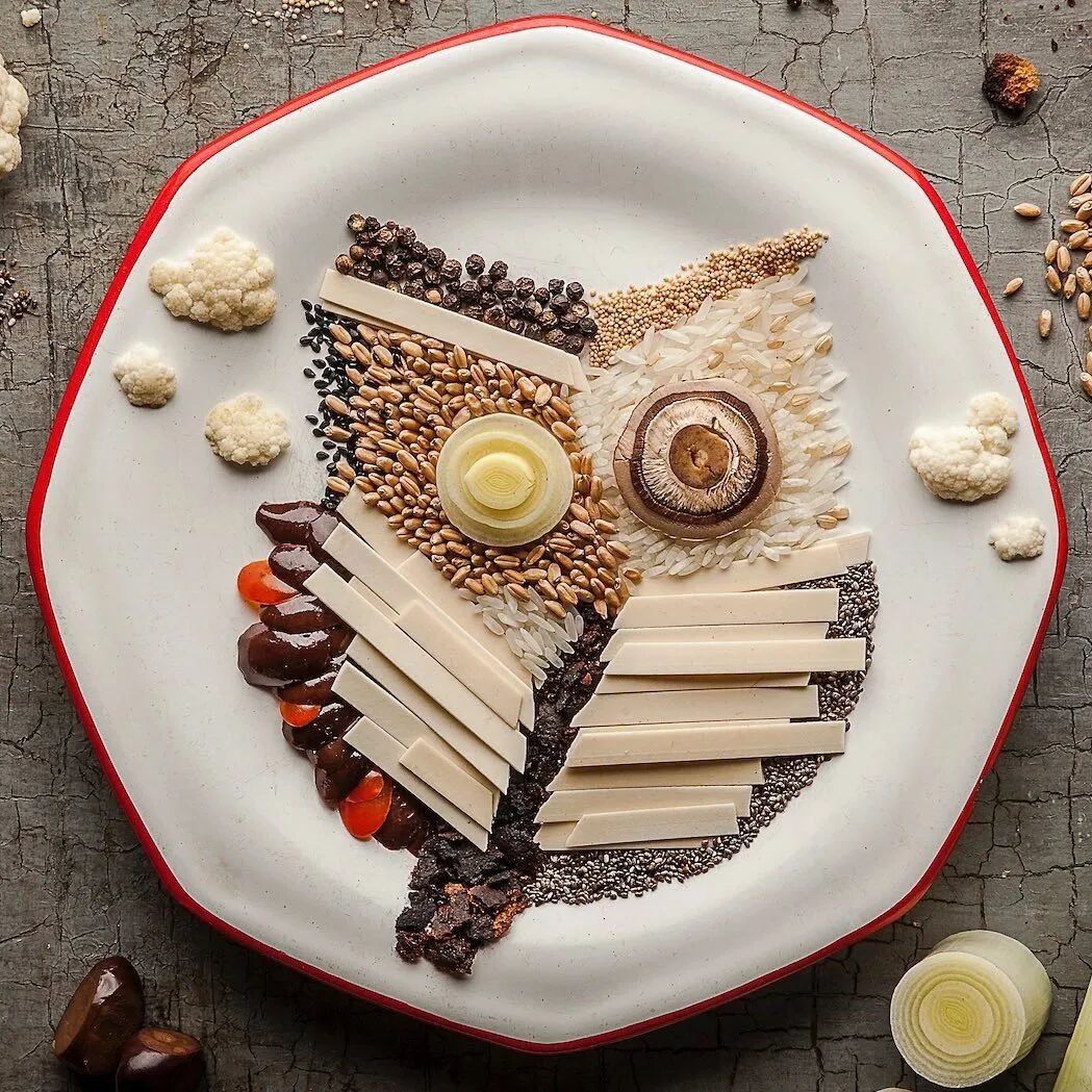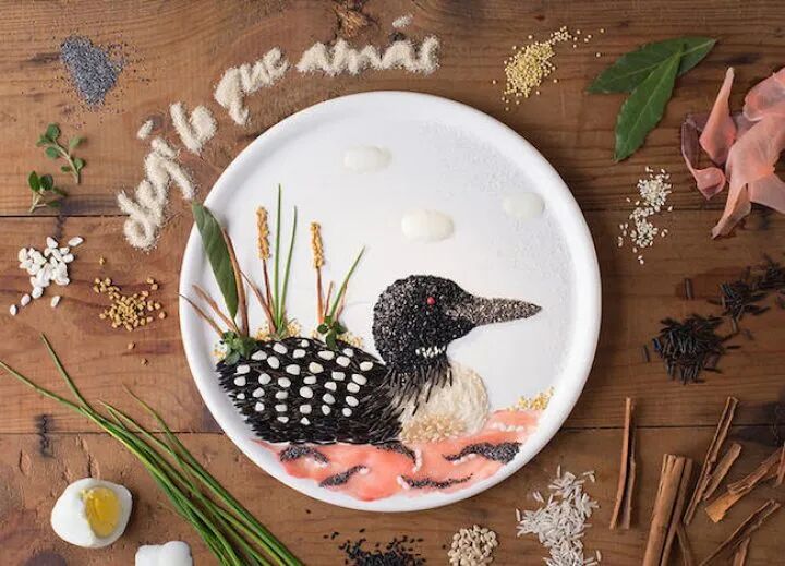 安娜·凯维尔·乔伊斯以各种食材作为颜料,以白色的盘子作为画布,创作可以下锅煮的独特“画作”,胡萝卜、各种豆类、绿叶蔬菜,摇身一变,成了一幅幅花鸟图、猫头鹰、野鸭子等等。尽管她的作品完全是由食材制作而成的,但色彩的丰富度,以及画面的精致度丝毫不属于画在纸上的画作,造型逼真、场景生动,栩栩如生。