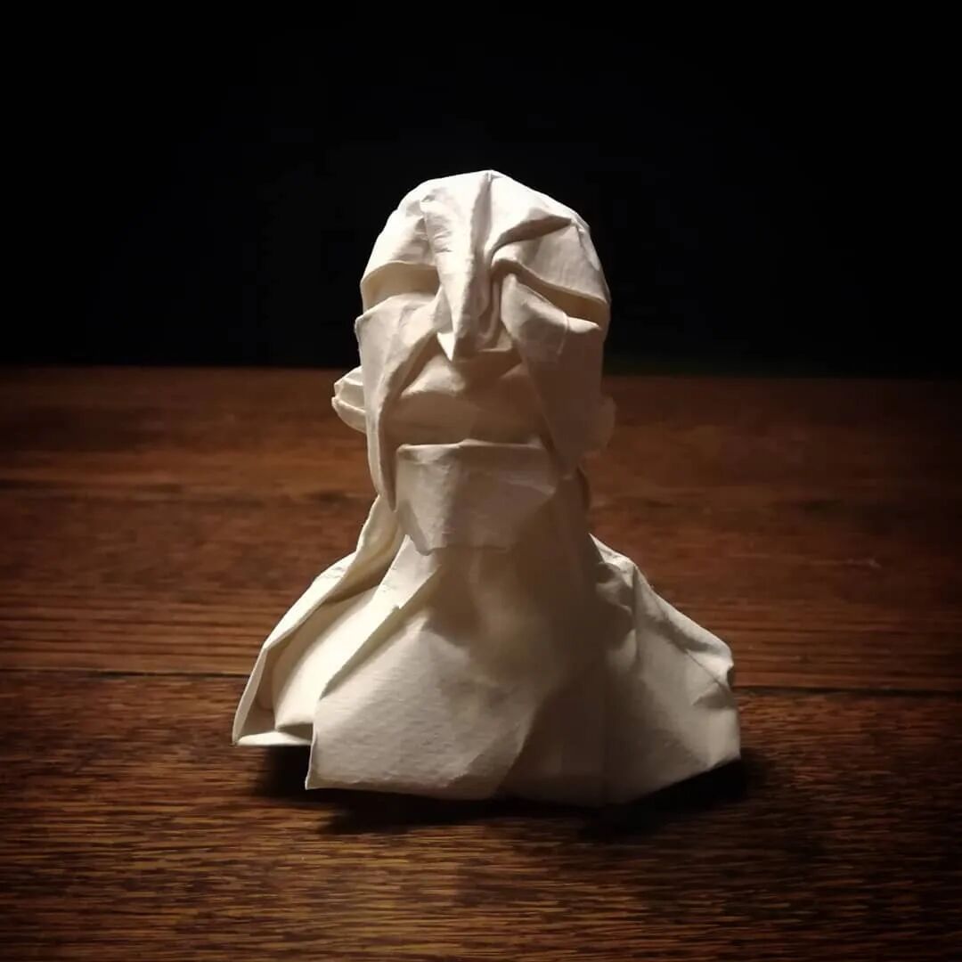 在欣赏作品之前,绛紫艺术要介绍一下若昂·查鲁瓦为什么会创作这一系列作品,对于这位折纸艺术家来说,面孔本身就拥有一种神秘的感觉,具有一种我们以某种方式认同的能量,这些面孔就像是我们想象力的门户。而创作这些折纸作品目的,就是为了打开我们的想象力,引导我们幻想这些折纸人像背后的故事。