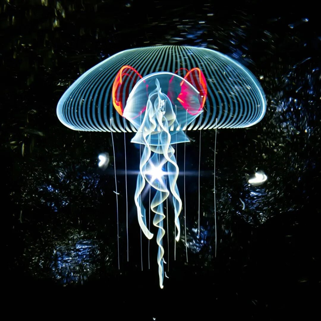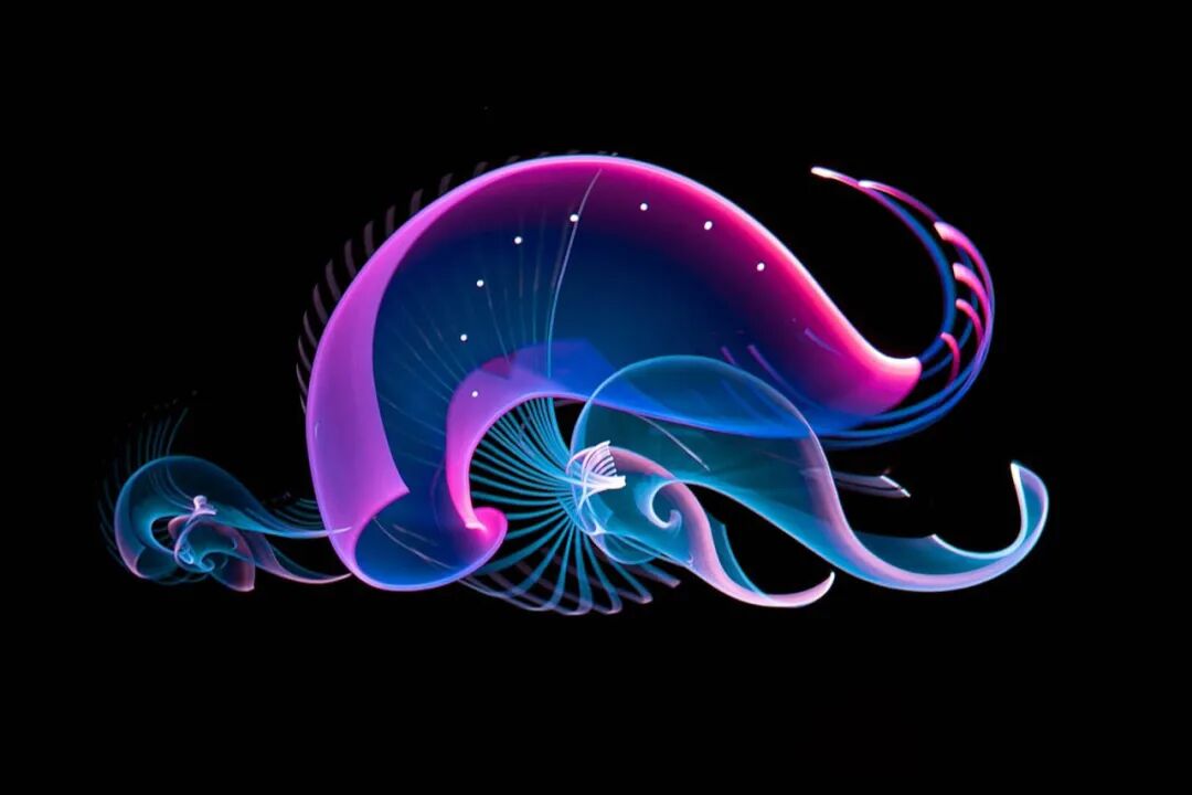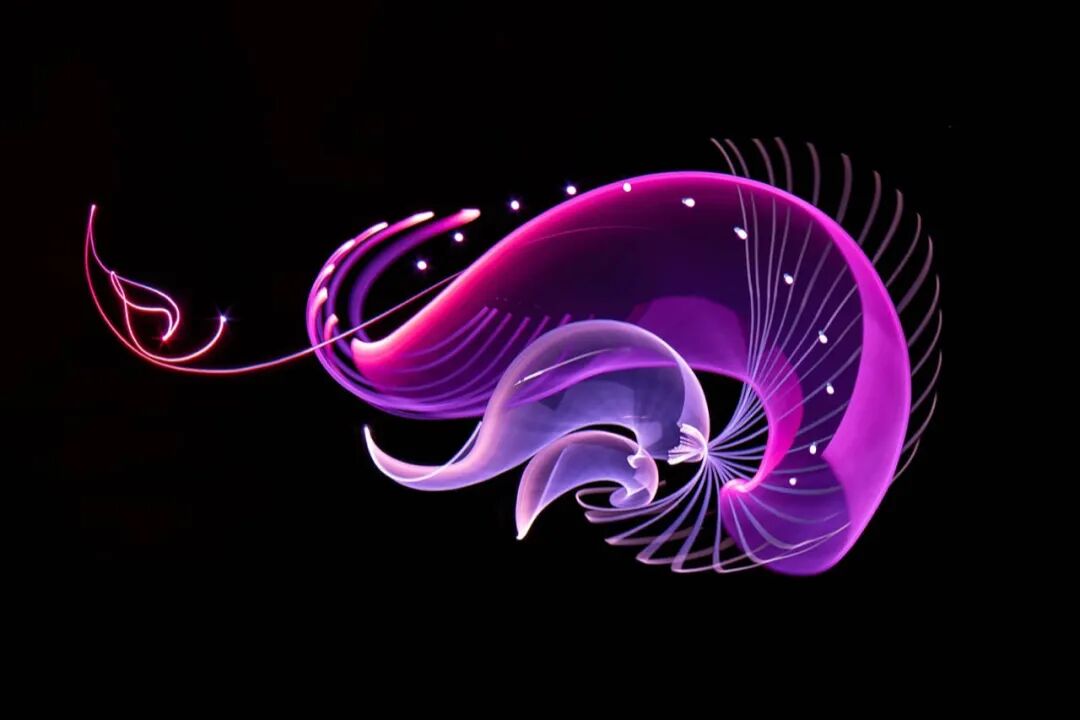 在汉努·胡塔莫的作品中,我们可以看到发光的水母漂浮在空中,绚烂的花朵是如何灿烂绽放,飞舞的鸟儿展现优美的舞姿,每一个场景都让人神往,通过光亮与黑暗的对比,让我们感受到浪漫的感觉。