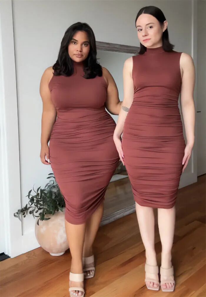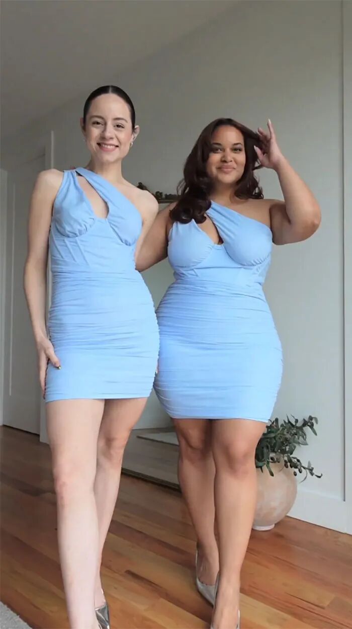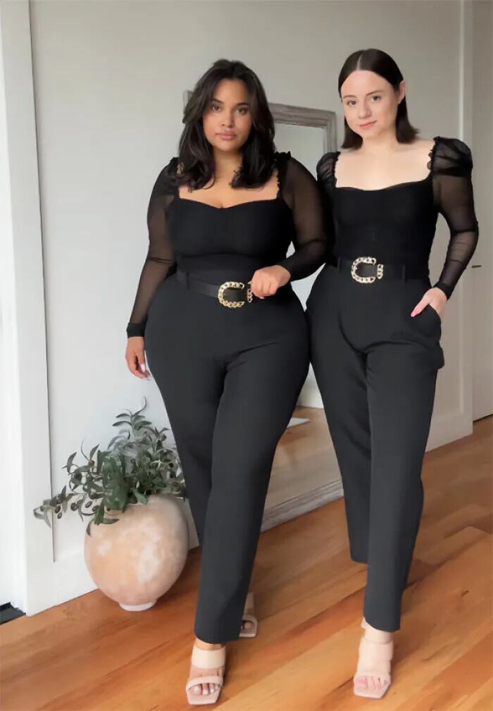 这样的现状,让人们反对“身材霸凌”的呼声变得非常强烈,希望社会能够给予不同体型的人群更多的包容。谁规定的只有够瘦才是美,只有瘦子才能穿衣服好看?为了证明,不同体型的人,有着不一样的美,国外一对闺蜜就拍摄了一组特别的照片,这两个人的体型完全不同,一个瘦,一个胖,但是当她们穿上同一件衣服后,却展现出了两种完全不一样的魅力。