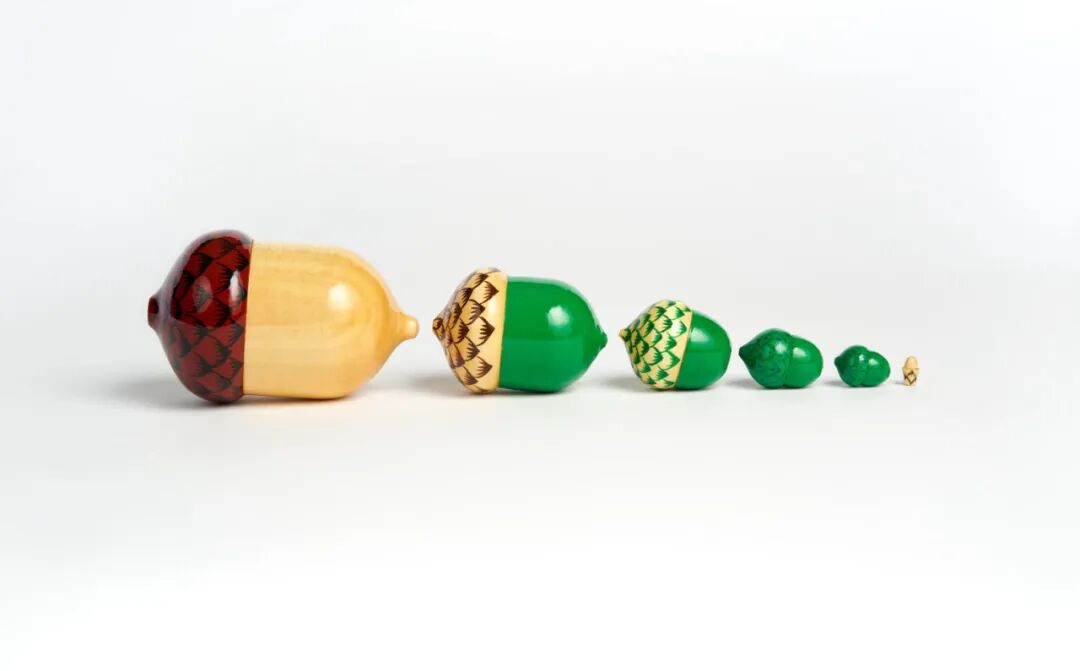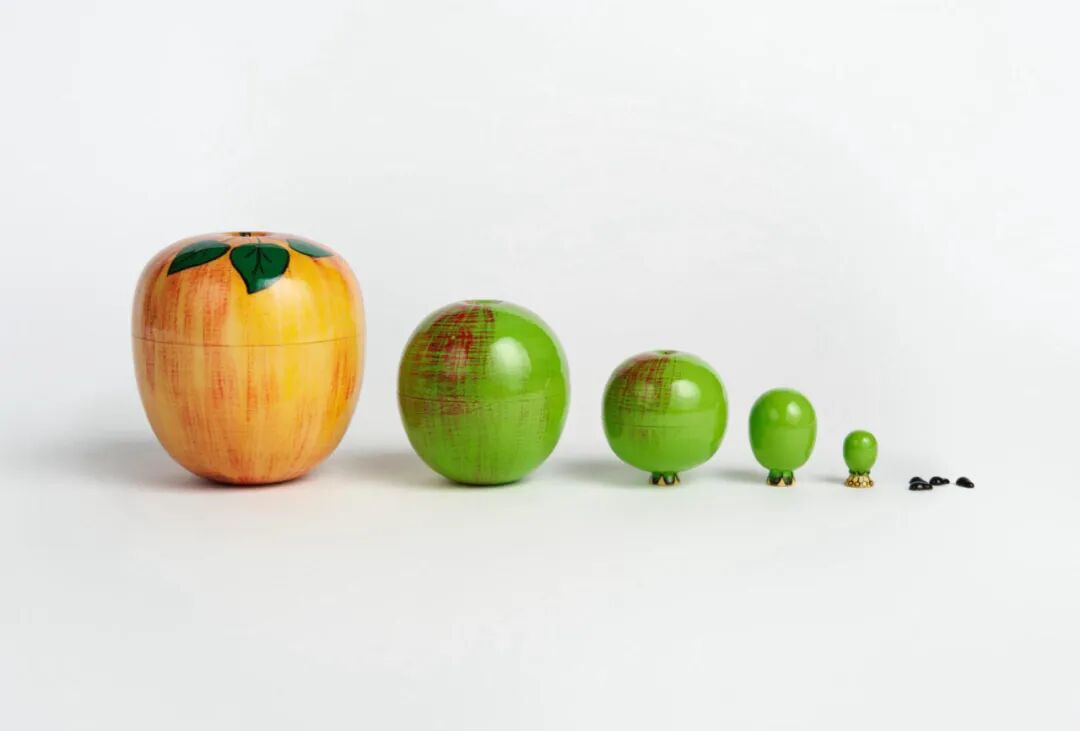 与传统套娃相似的地方是,它们都是逐一缩小体型,与传统套娃不同之处在于,这些套娃样式十分广泛,包含水果、蔬菜和动物形象,甚至,银河系中的行星也可以看到。打开第一个套娃之前,我们猜想不到它里面藏着的究竟是什么。不过,这些套娃之间并非没有联系,以鲸鱼套娃为例,鲸鱼会吃海豹、海豹吃企鹅、企鹅吃大鱼、大鱼吃小鱼,最后,小鱼则在吃水中的微生物。