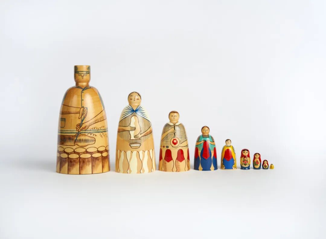 俄罗斯套娃是一种非常具有俄罗斯特点的玩具,诞生于14世纪,受到全世界小朋友的喜爱,相信很多人童年时期都见过和玩过类似的套娃玩具,俄罗斯套娃主要以木质材料为主进行制作,正常来说,套娃中每一个空心娃娃都拥有相似的造型和色彩,并逐层缩小体型,我们每打开一个娃娃,就会出现一个完整的新娃娃,这种套娃一般会拥有6到10个单独的娃娃。