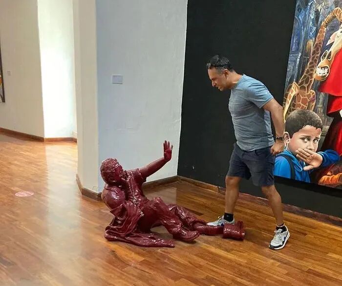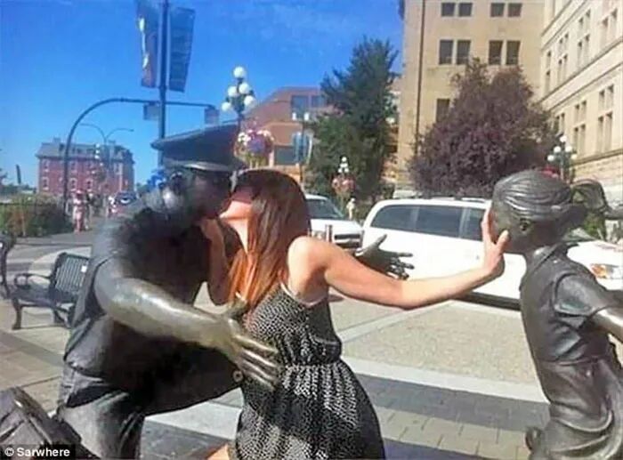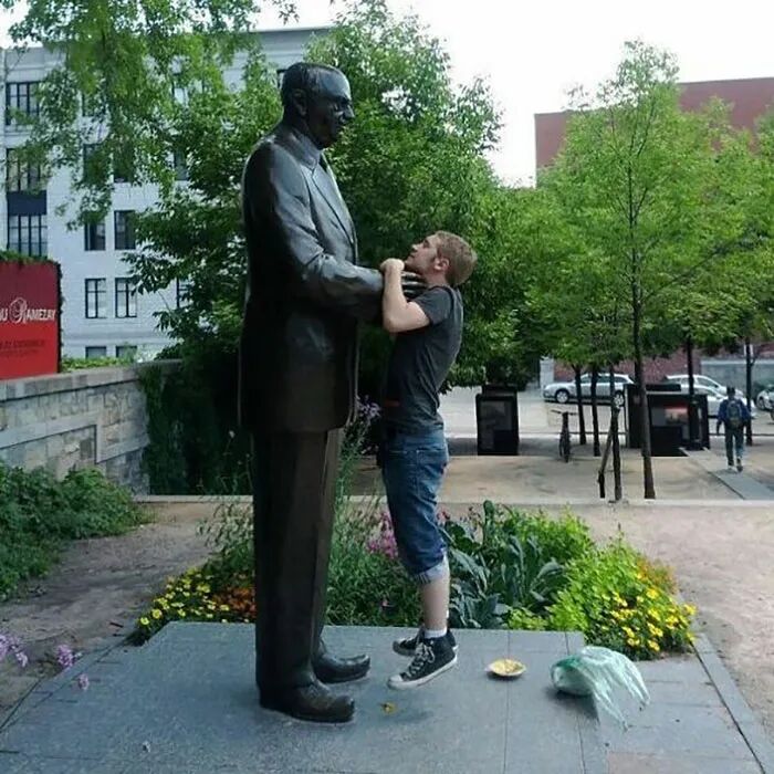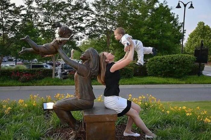 观看和触摸都是欣赏雕塑的方式,除此之外,一些有趣的人,还同这些雕塑作品进行互动,人物的加入,让这些雕塑作品的意义和画风都急转直下,即便再严肃的作品,加入人物的互动后,也变得十分有趣,一些并不出名的雕塑作品,也因为人们的趣味互动被更多人了解,许多人认为,用互动的形式去欣赏雕塑作品,才是雕塑作品“正确”的打开方式。