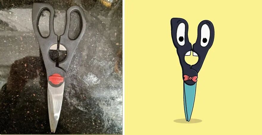 大约在4年前,绛紫艺术就为大家介绍过这位创意插画家,基思·拉森的创意作品并非凭空想象,而是通过拍摄现实生活中的场景,再利用想象力将其重新创作而成。基思·拉森会尽可能地保留原本物体的造型,通过添加眼睛、鼻子、嘴巴等配件,以及更改颜色,将其变成动物或人物的形象。
