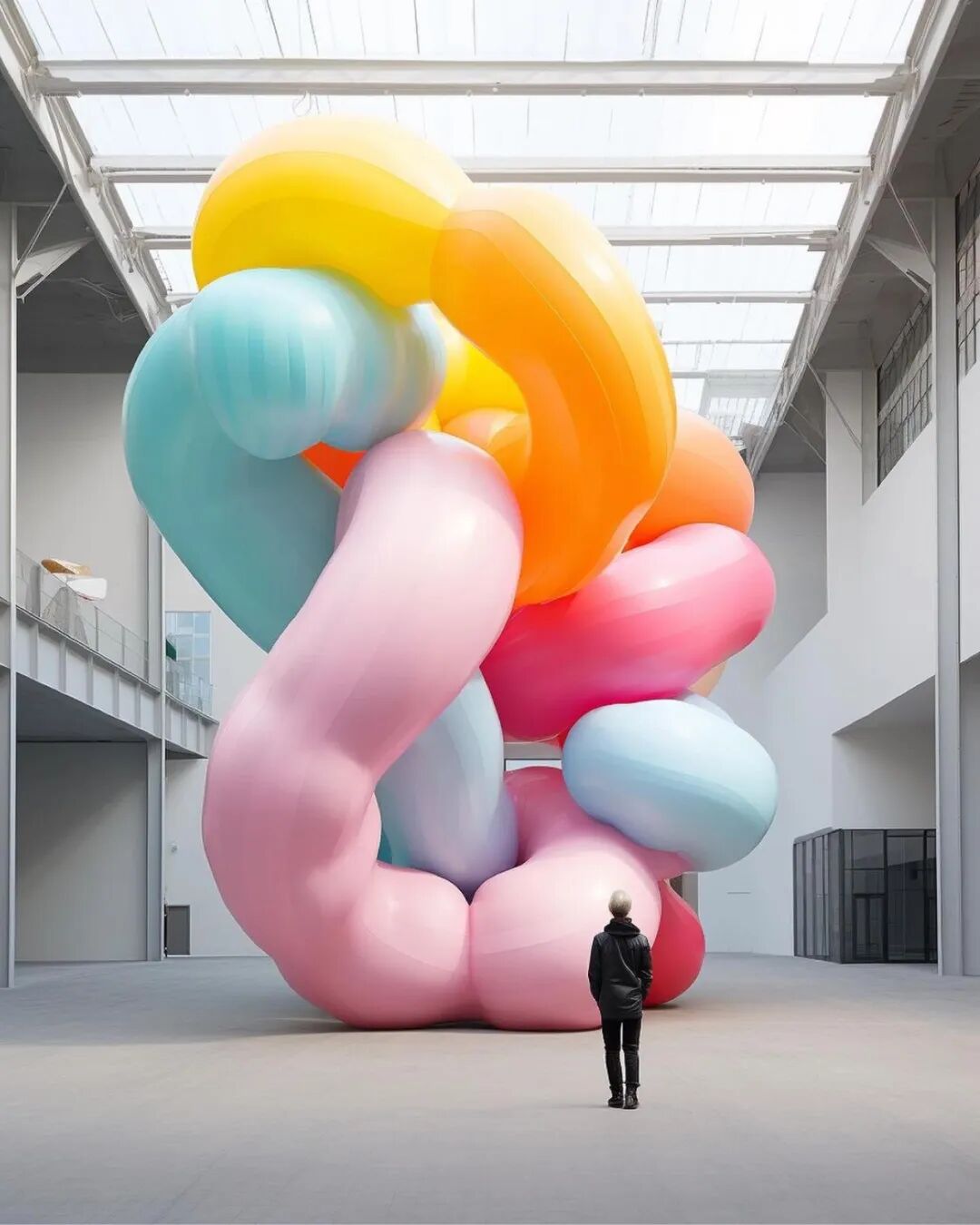 来自美国的艺术家肯·凯莱赫,就是一位大型雕塑和装置艺术创作者,他的雕塑作品就是以充气感为主,无论是抽象的几何形状,还是造型可爱的动物形象,都给人带来十分难忘的视觉感受。