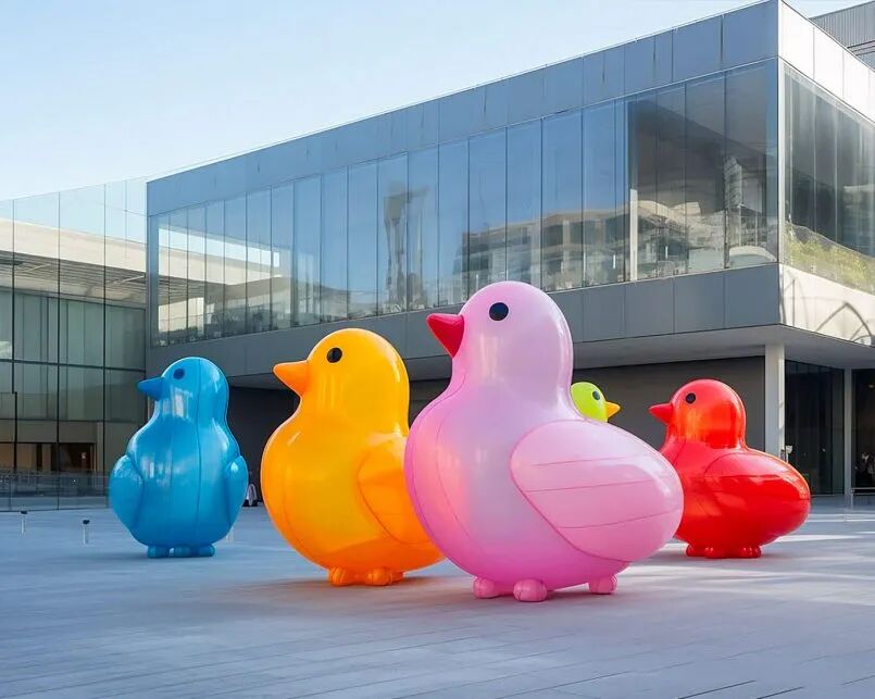 我们生活中类似充气造型的雕塑作品越来越多,也越来越常见,它似乎逐渐成为一种新的时尚,这些雕塑作品获得人们青睐的原因就在于,它们拥有圆滚滚的造型,简单直观的造型,加上鲜艳亮丽的色彩,非常符合年轻人的审美情趣。
