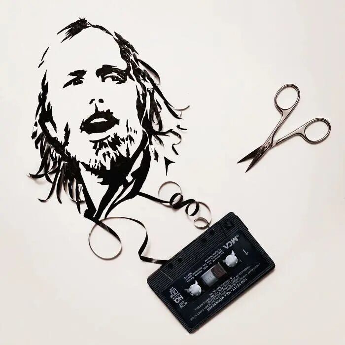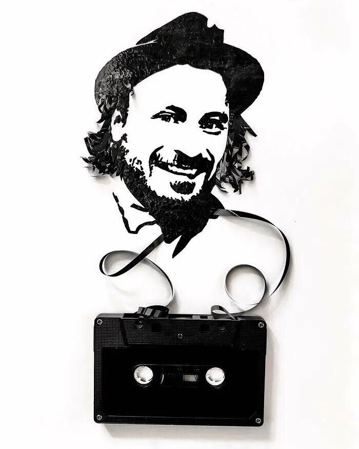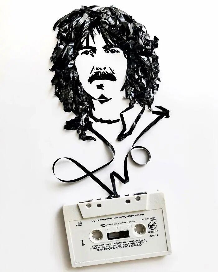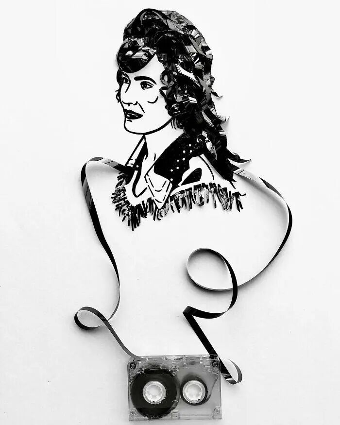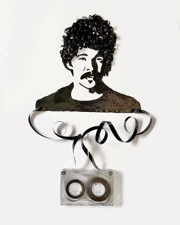 但是,今天小绛要介绍给大家的这位艺术家,就赋予了旧盒式磁带第二次生命,她的名字叫做艾米·卡森,是一位独立摄影师,她找到了一种非常绝妙的方式,来升级自己珍藏的那些旧盒式磁带就是使用它们来创作她最喜欢的音乐家的独特肖像。