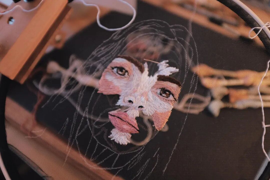 埃琳娜·奥班多,是一位来自哥斯达黎加的多学科美女艺术家,她涉猎的艺术领域非常广泛,比如芭蕾舞、小提琴、绘画、珠宝设计等等,但真正让她脱颖而出,被人熟知的,则是她创作的令人难以置信的薄纱刺绣,她的刺绣作品非常特别,通过在薄纱上刺绣抽象面孔,捕捉人类微妙的表情差别,形成了自己独特的当代刺绣风格。