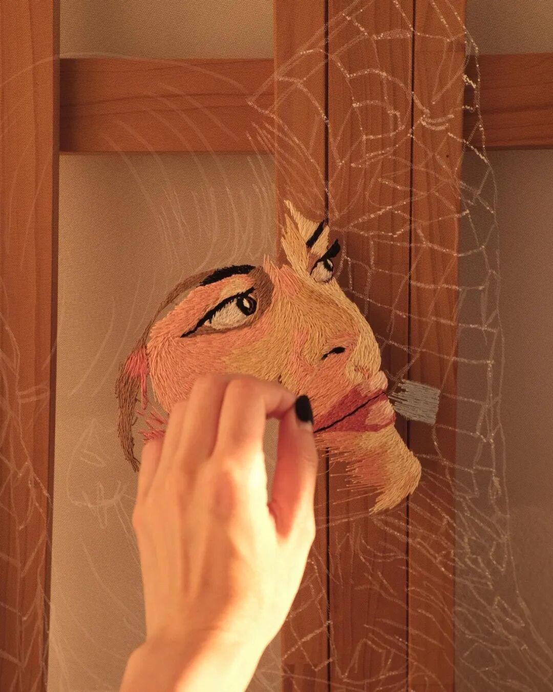 “我一直觉得自己是一个比较内向的人,这种性格大概是天生的,我羞于在人前展示自己,而我的薄纱肖像刺绣,则让我变得勇敢起来。我躲在它的后面,但其实是在向人们展示这些作品的同时,也在展示自己”。埃琳娜·奥班多对于自己的作品带给自己性格上的影响如是说。